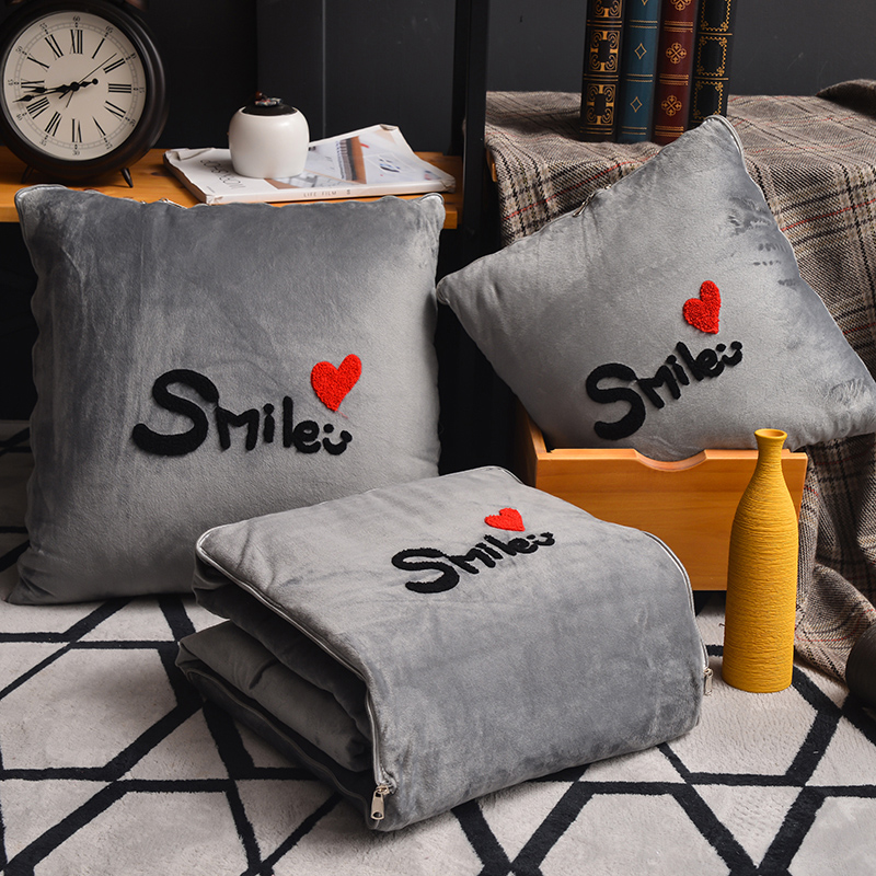 纯色抱枕被子两用加厚水晶绒抱枕汽车办公室沙发午休小毛毯靠垫被