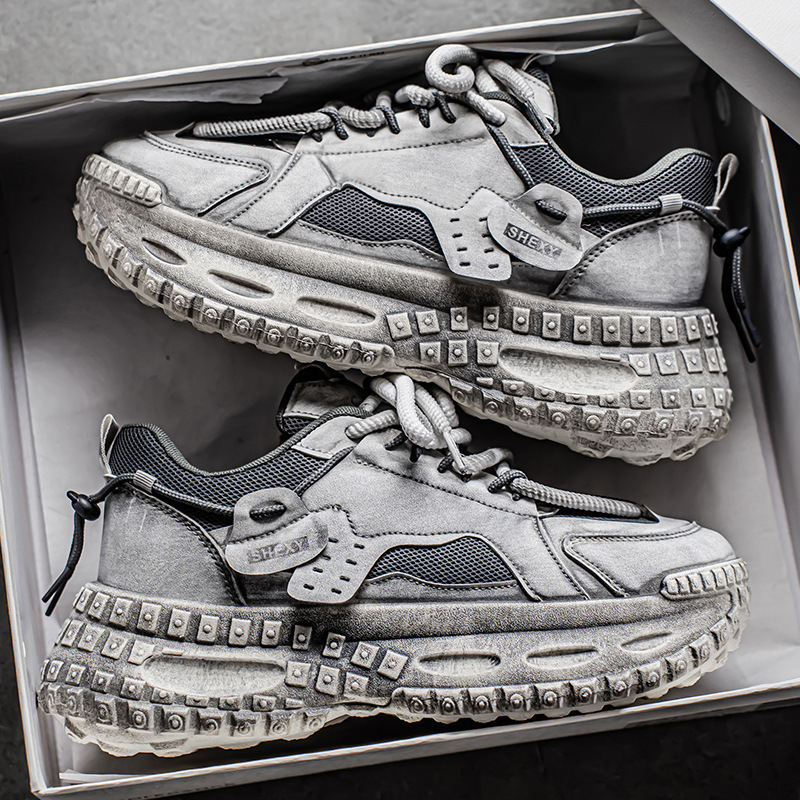 男鞋春季新款透气网面青少年运动鞋男潮流百搭轮胎底厚底老爹鞋男