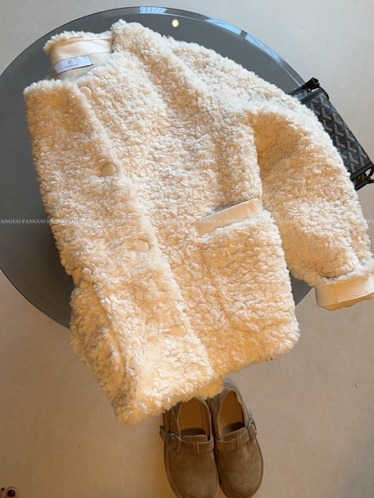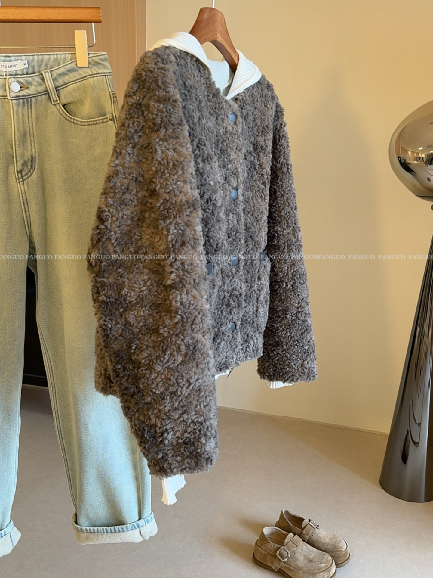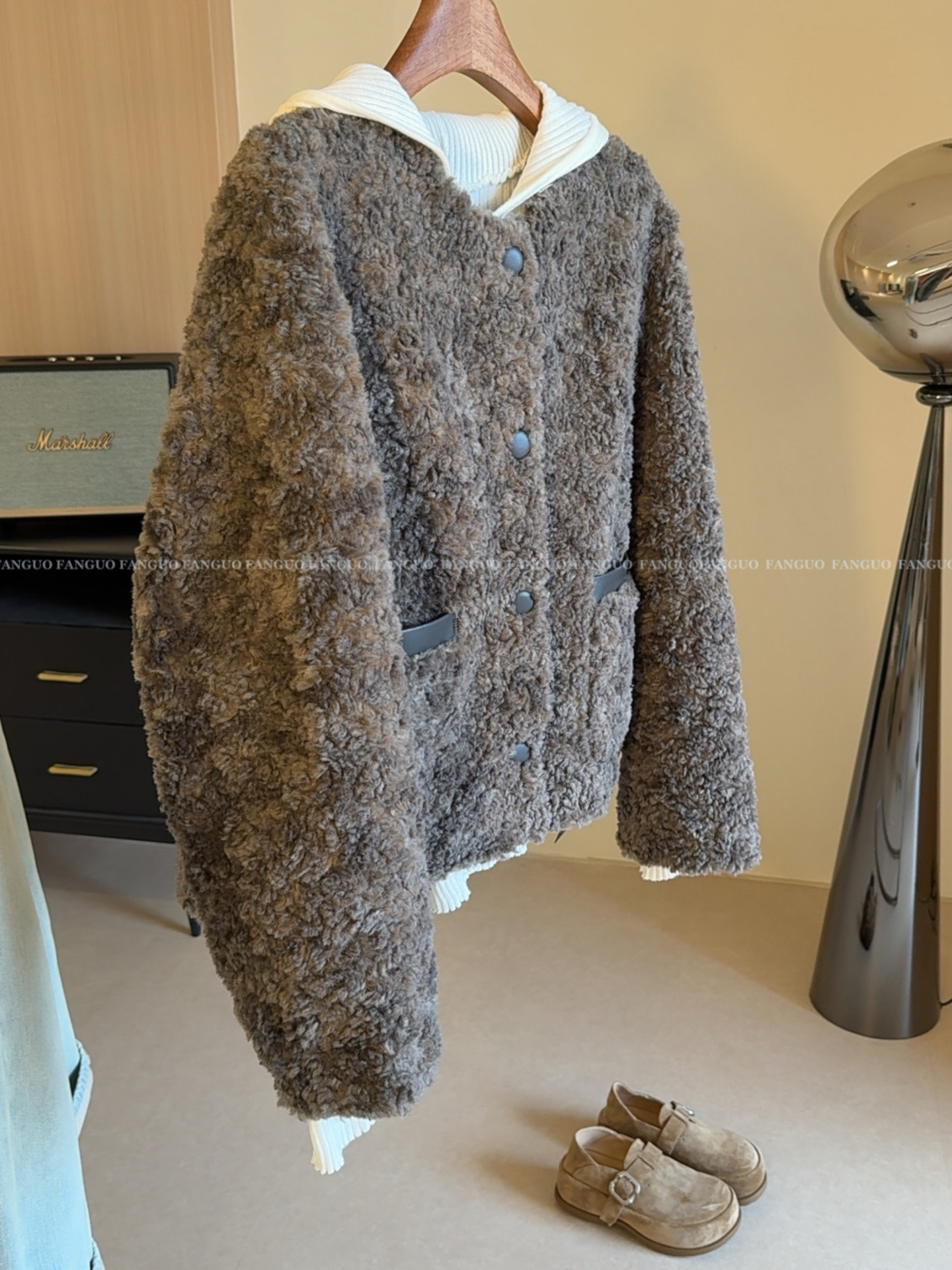 软糯保暖~经典复古圆领羊羔绒皮毛一体短款外套女小个子加厚