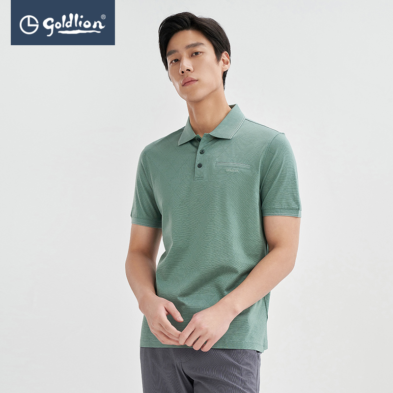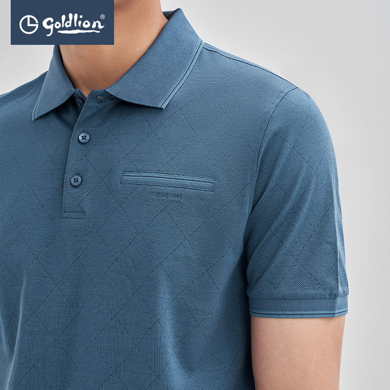 【长绒棉】金利来春夏新款男士Polo衫亲肤透气格纹多彩短袖T恤男