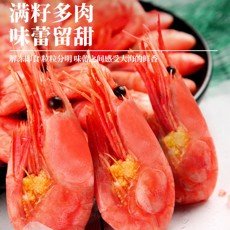 北极虾新鲜甜虾刺身冰虾大虾超大带籽满籽腹籽海鲜水产鲜活速冻