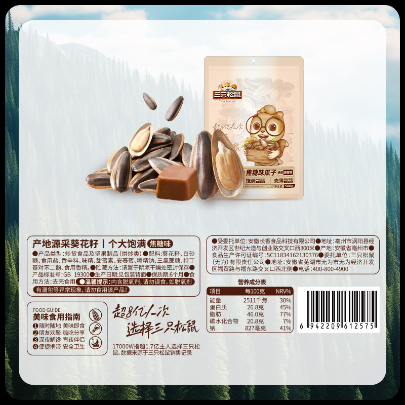 三只松鼠山核桃味/焦糖味瓜子坚果炒货葵花籽节日聚会休闲零食