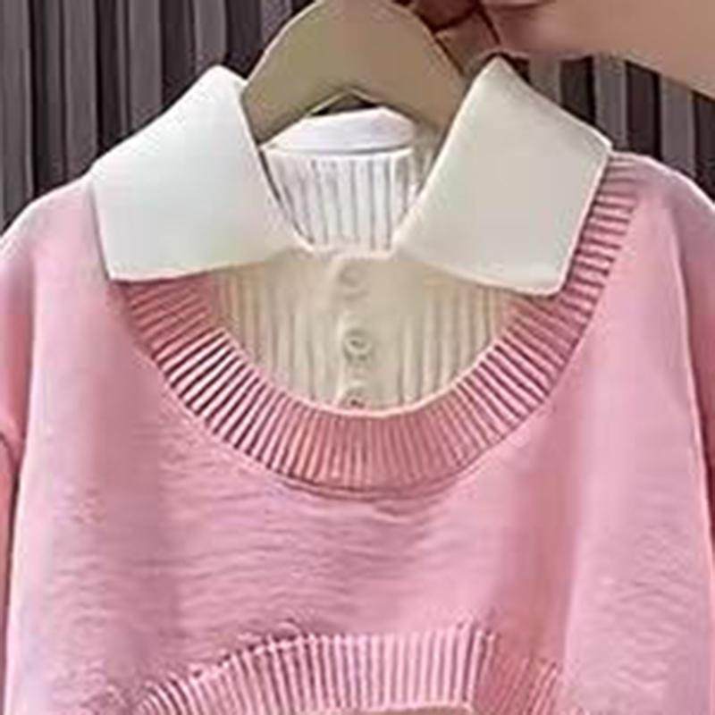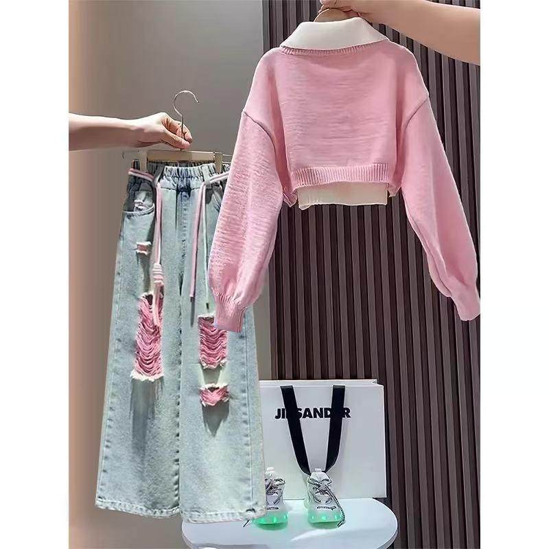 女童三件套装春装2025新款韩版小女孩中大童春秋季爆款毛衣牛仔裤