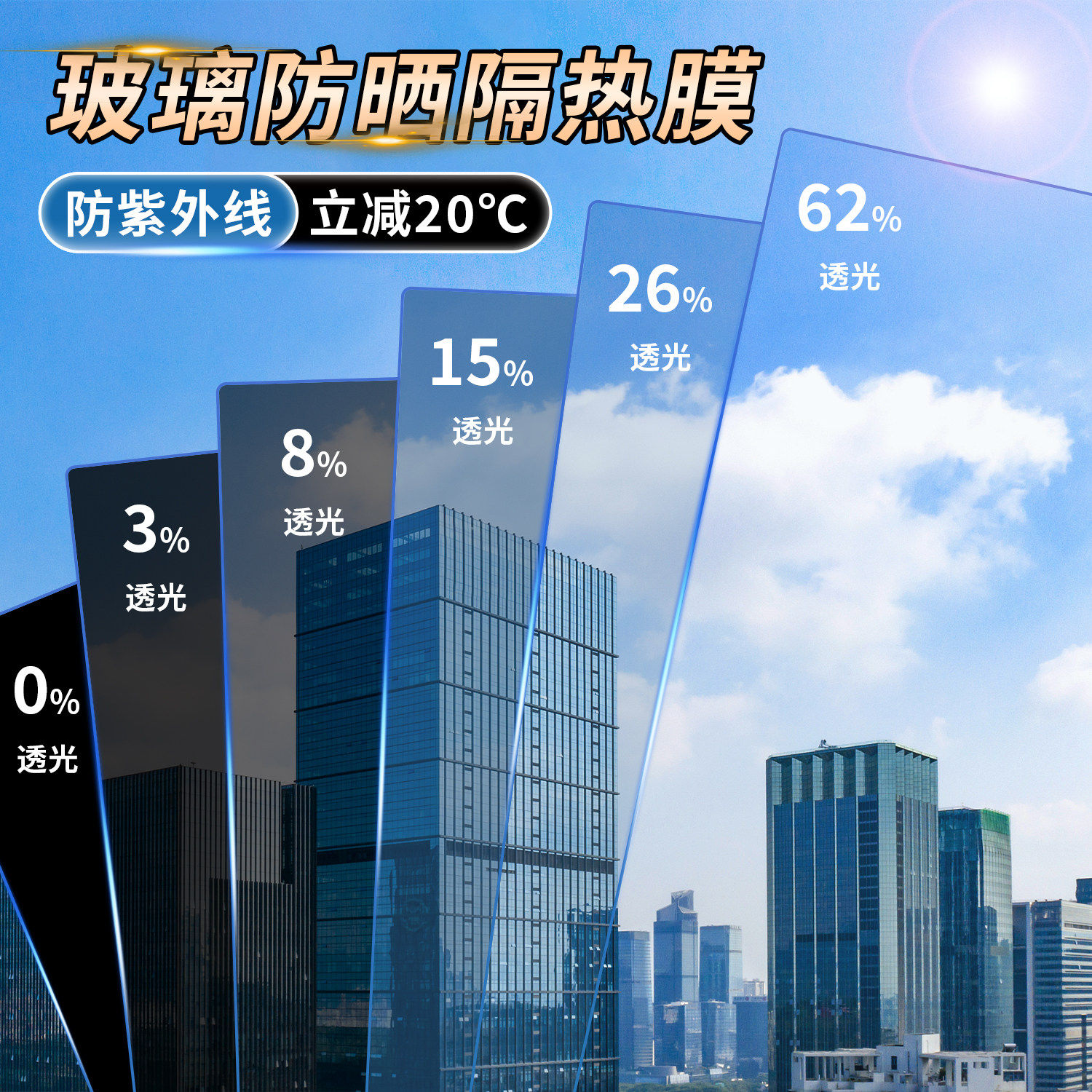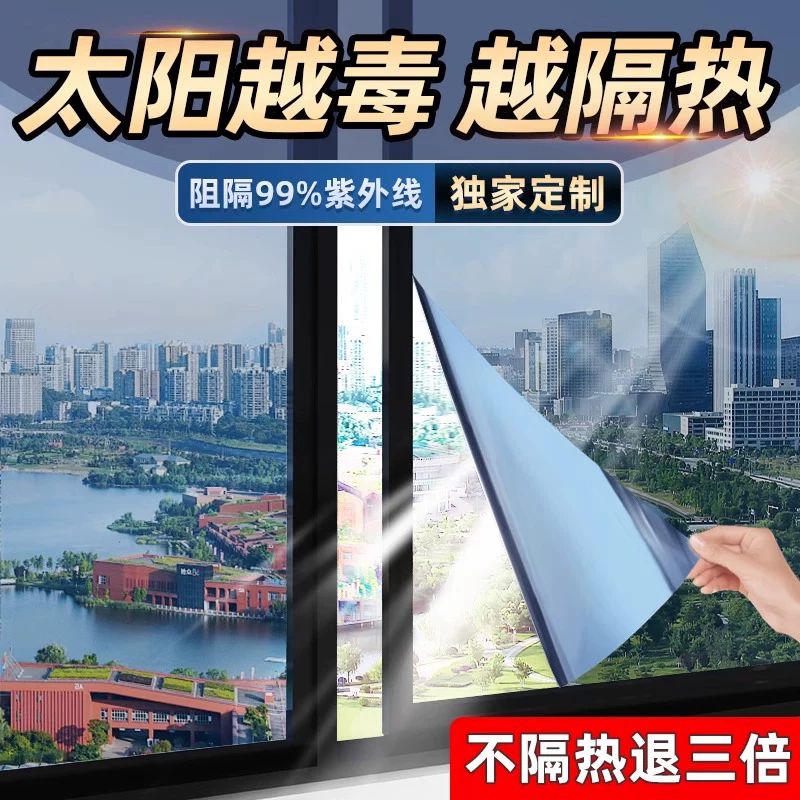 阳台窗户防西晒玻璃隔热膜耐高温防晒太阳膜遮阳遮光单向透视贴纸