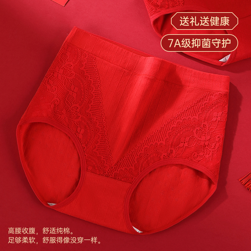 雅鹿妈妈红色内裤女7a级抗菌高腰