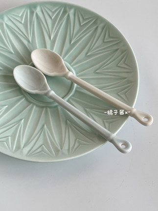 橘子酱x 日式复古文艺陶瓷咖啡搅拌勺 酸奶勺调味勺咖啡店商用勺