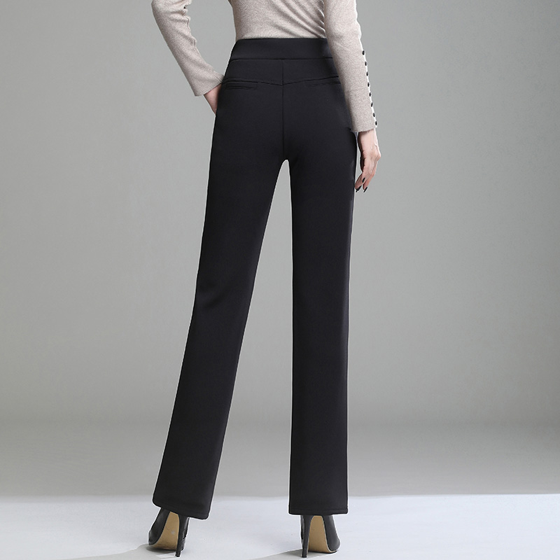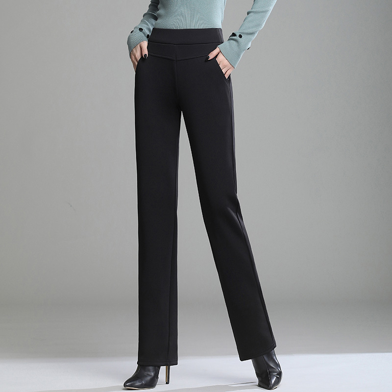 直筒裤女加绒加厚秋冬高腰大码宽松弹力显瘦工作裤垂坠感西装长裤
