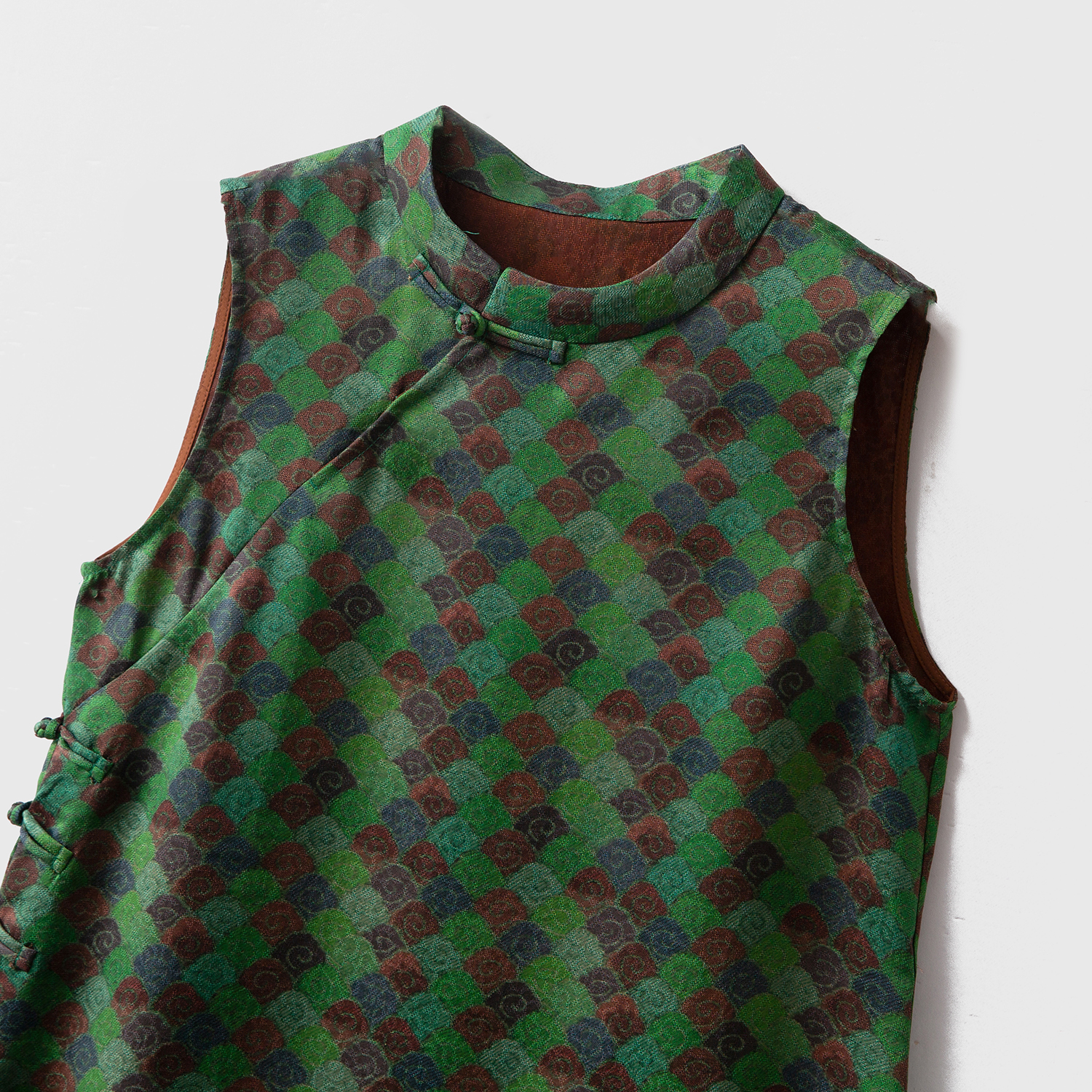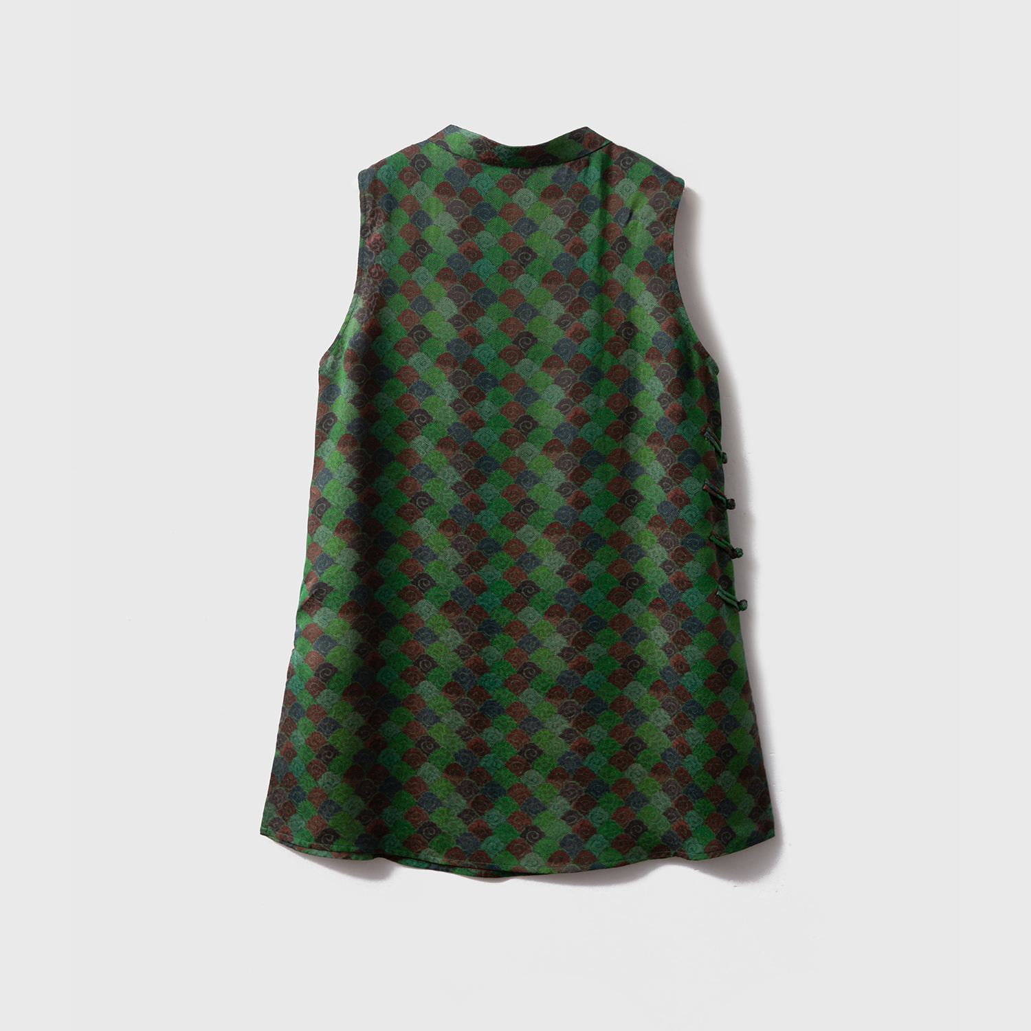 现货 祥云100%桑蚕丝真丝提花香云纱盘扣奥黛中长款上衣无袖T恤