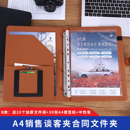 置业顾问销讲夹定制多功能A4文件夹商务谈单夹皮质谈客夹保单经理夹谈判咨询本夹拉链包销售夹展业活页资料夹