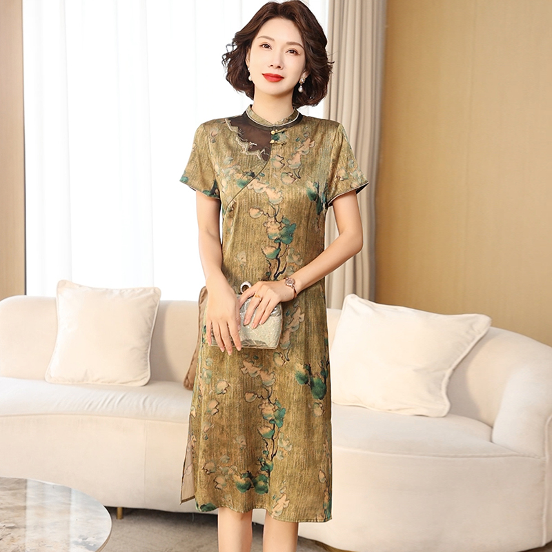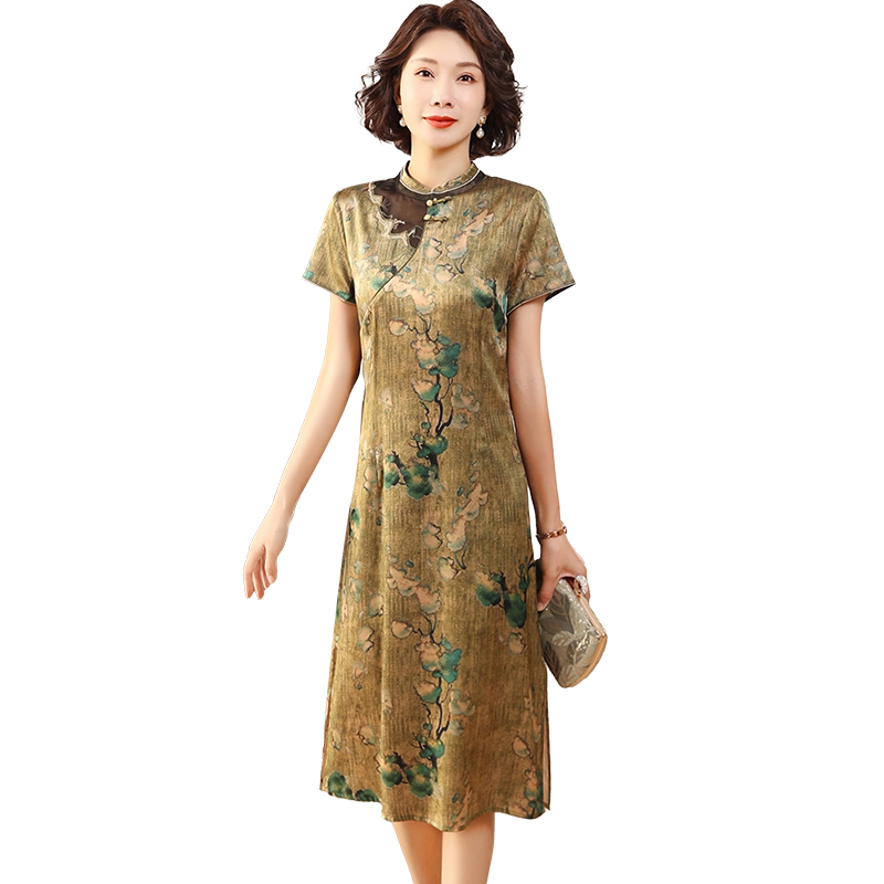 高级真丝连衣裙女改良旗袍新中式收腰显瘦短袖桑蚕丝裙子气质夏季