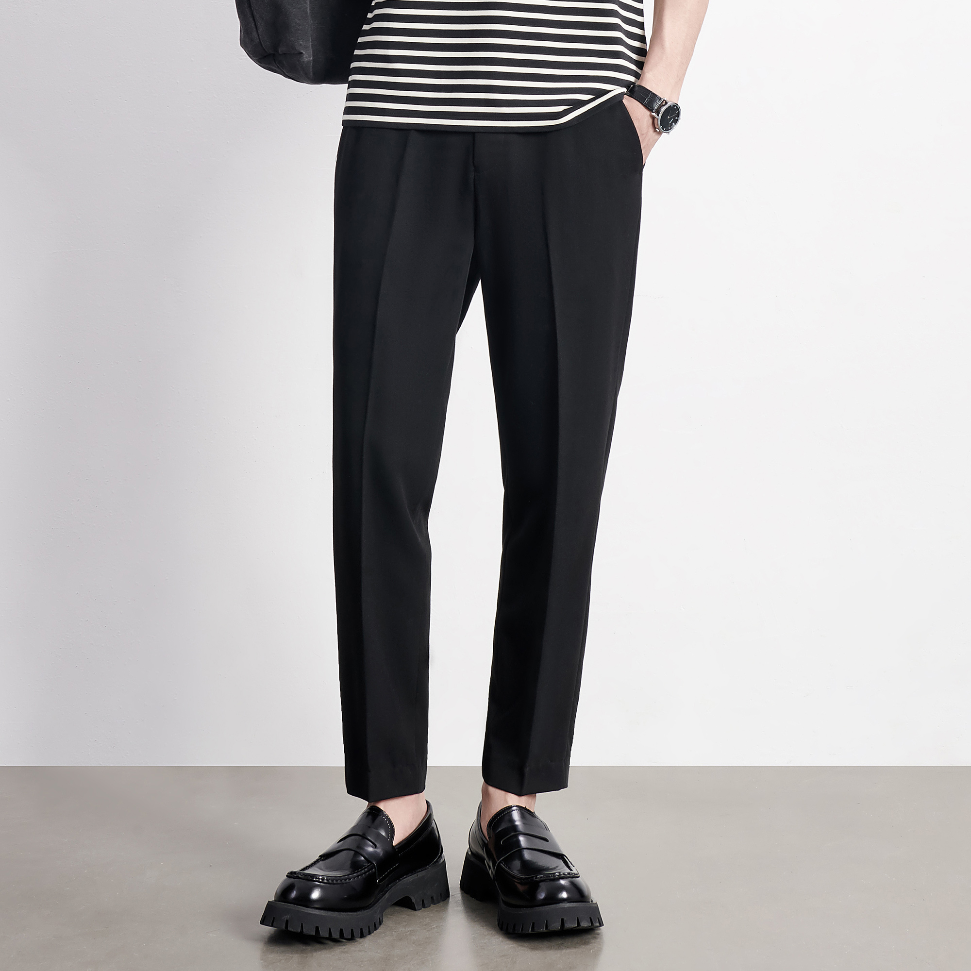 冰丝夏季垂感小西裤男2025新款百搭休闲长裤修身直筒薄款九分裤