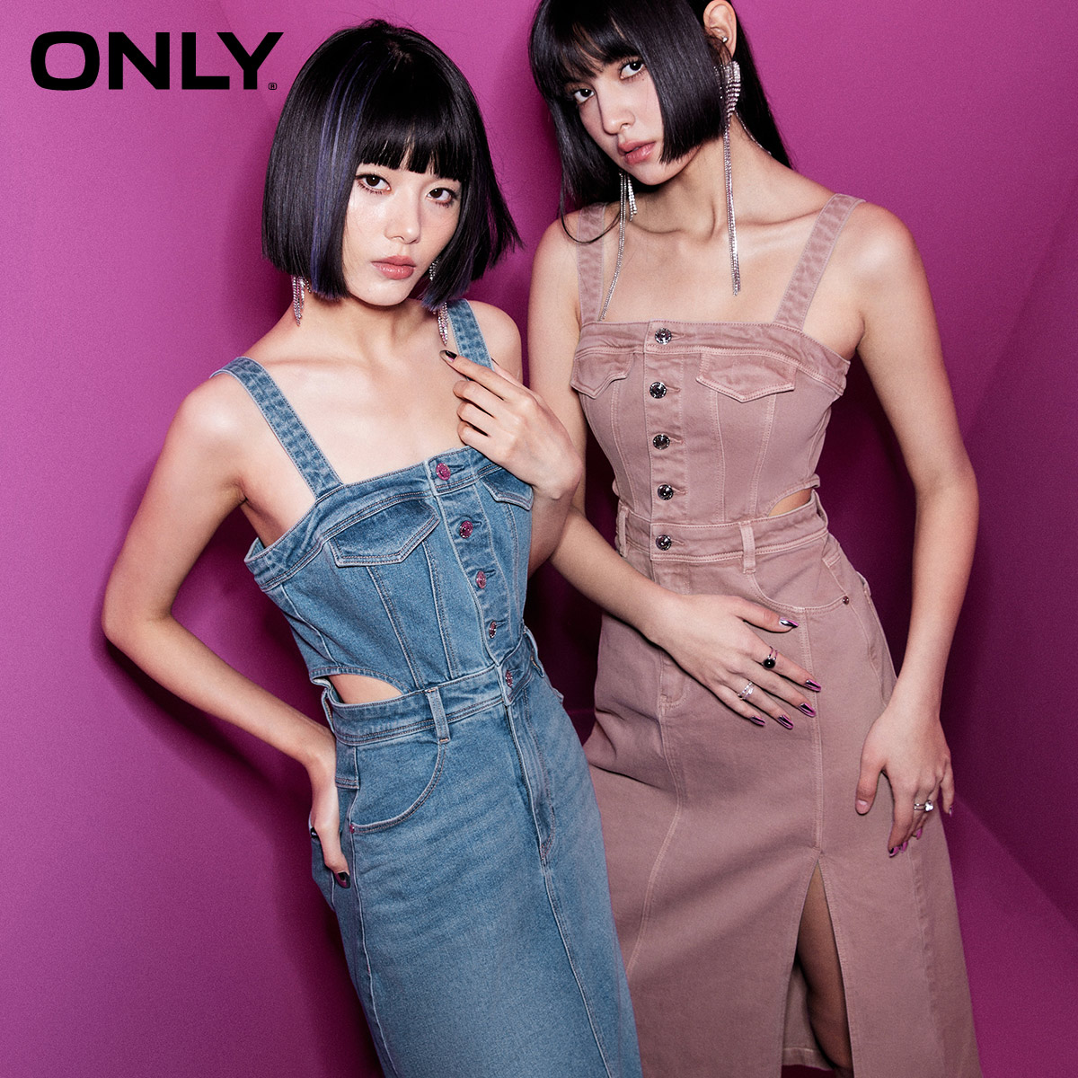 【ONLY奥莱】秋冬气质吊带A字开叉中长款牛仔连衣裙女|124142014