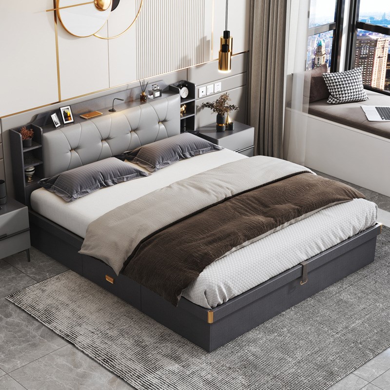 简约现代气动高箱储物床液压北欧极简小户型1.5m1.8米轻奢双人床