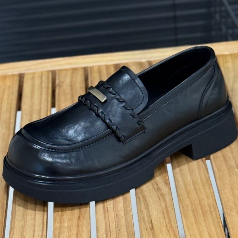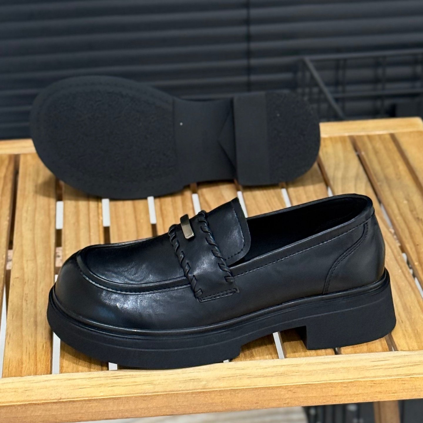 黑色粗跟乐福鞋女2026年新款英伦风小皮鞋一脚蹬中口单鞋职业通勤