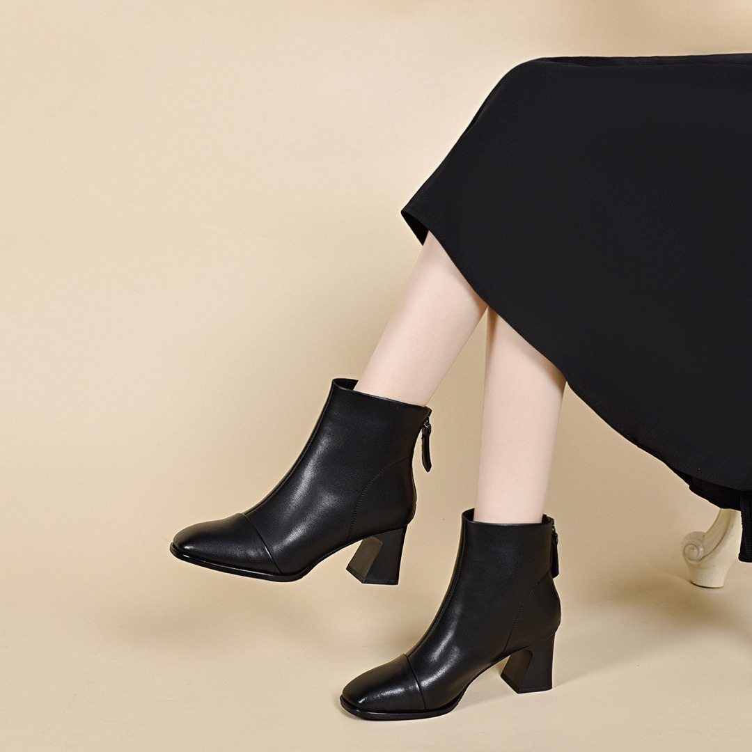 时装靴女秋季新款复古休闲短靴真皮粗跟马丁靴舒适橡胶软底妈妈鞋