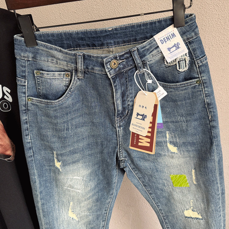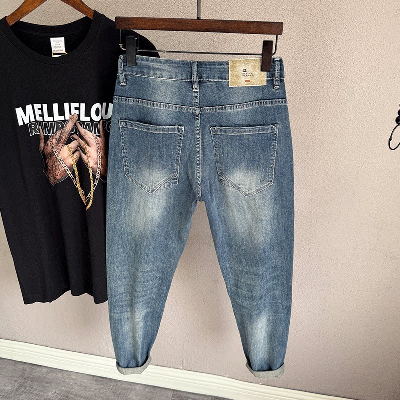 破洞复古蓝色牛仔裤男夏薄款
