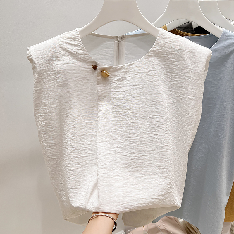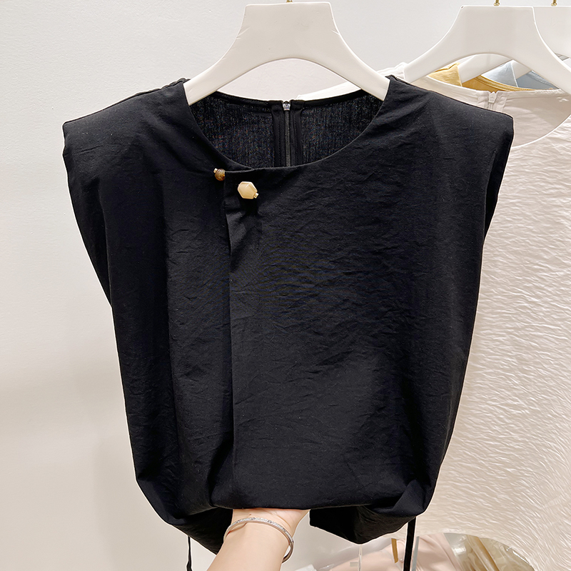 2025新款韩国气质显瘦圆领珠子装饰系带无袖上衣女夏季薄款
