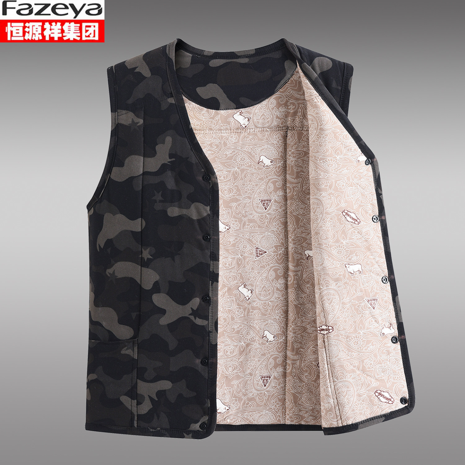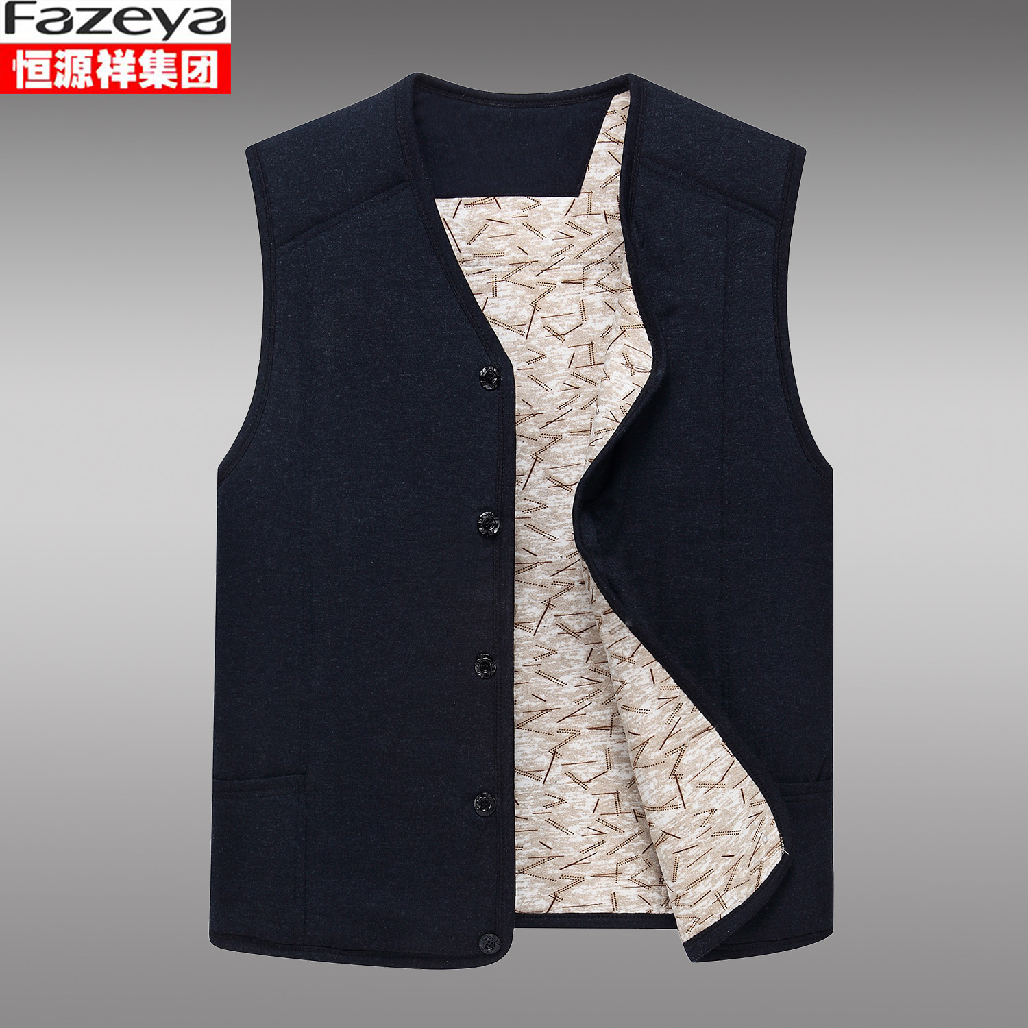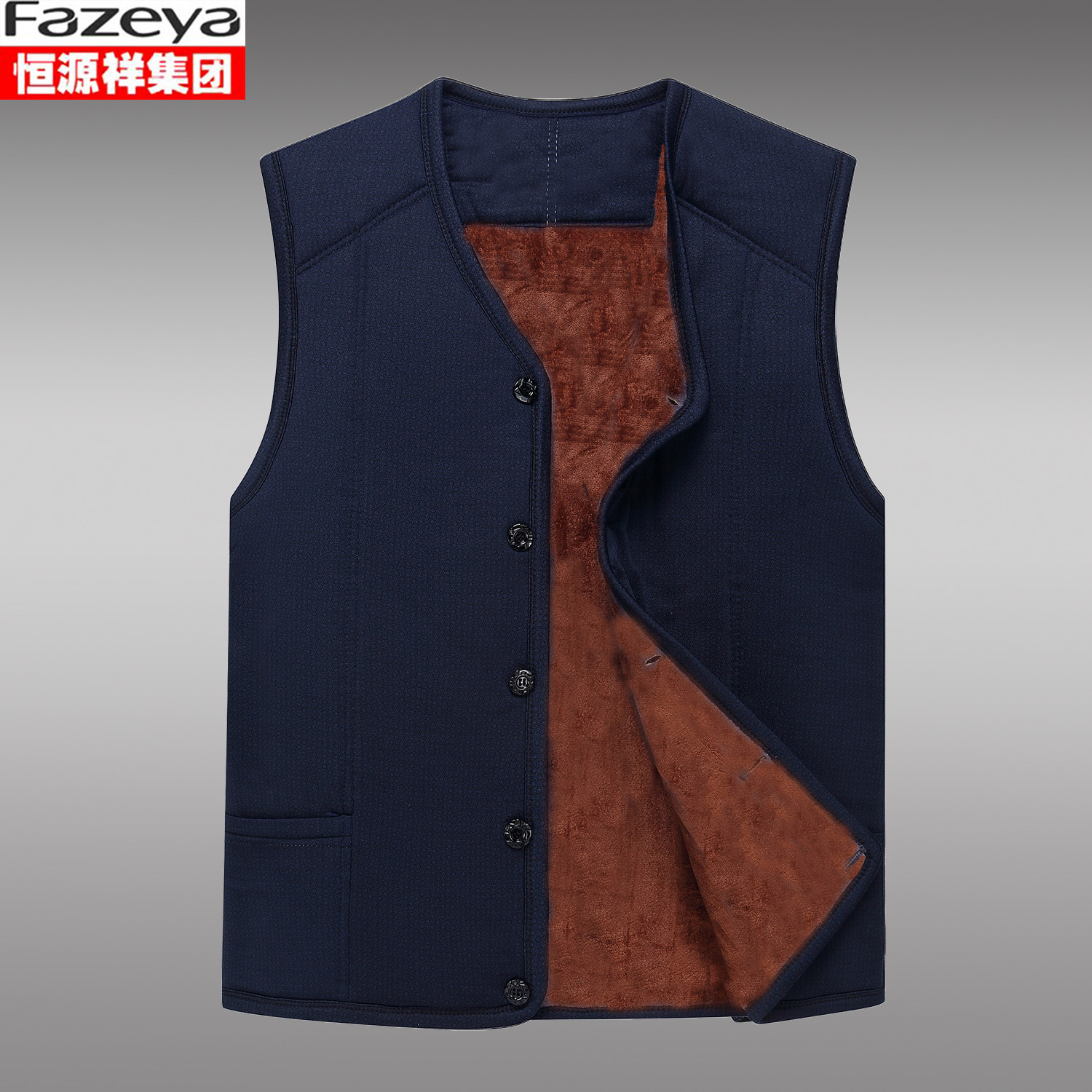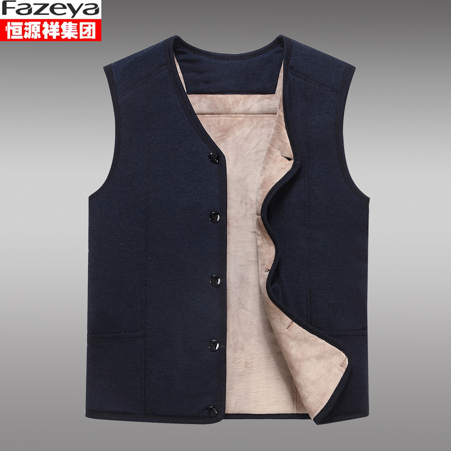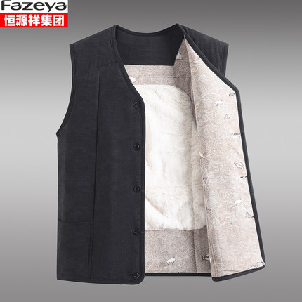恒源祥集团彩羊驼绒棉马甲男中老年厚保暖坎肩背心居家内穿爸爸装