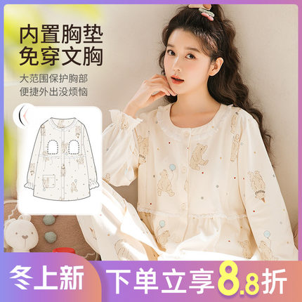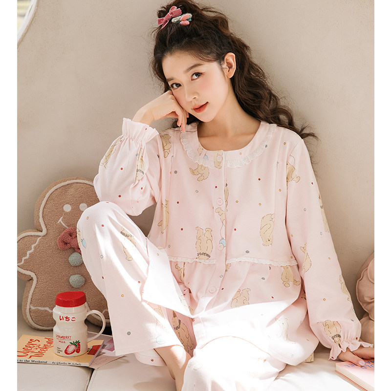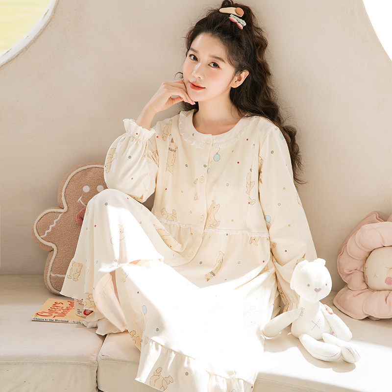 家时光月子服纯棉全棉吸汗春秋产后孕妇哺乳睡衣3月份4产妇家居服