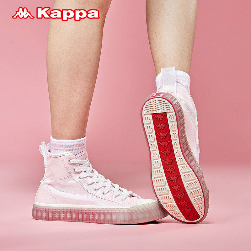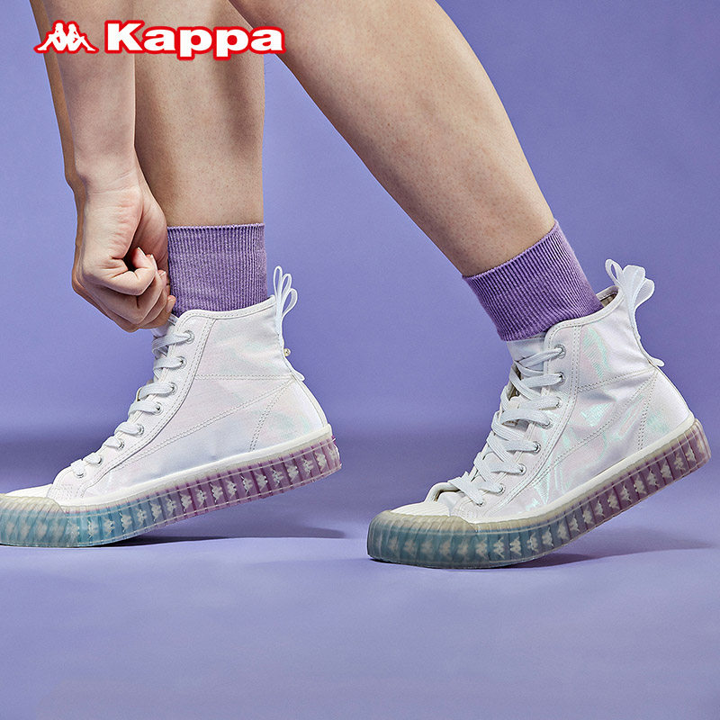 Kappa卡帕潮品串标女运动板鞋高帮帆布鞋白鞋-K0A65VS68D