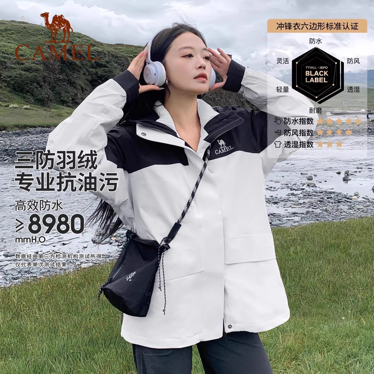 骆驼户外冲锋衣女羽绒内胆2025秋冬季新款旅游徒步登山服男士外套