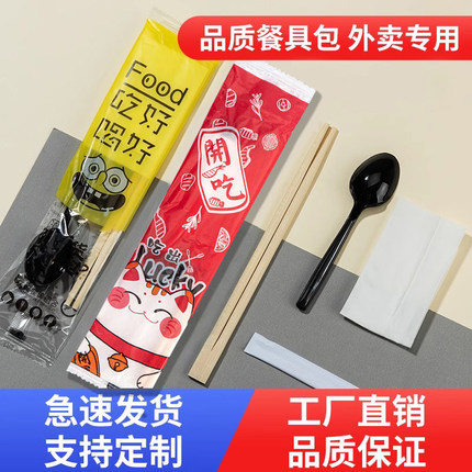 一次性筷子四件套外卖专用打包餐具勺子套装三件套饭店家用商用