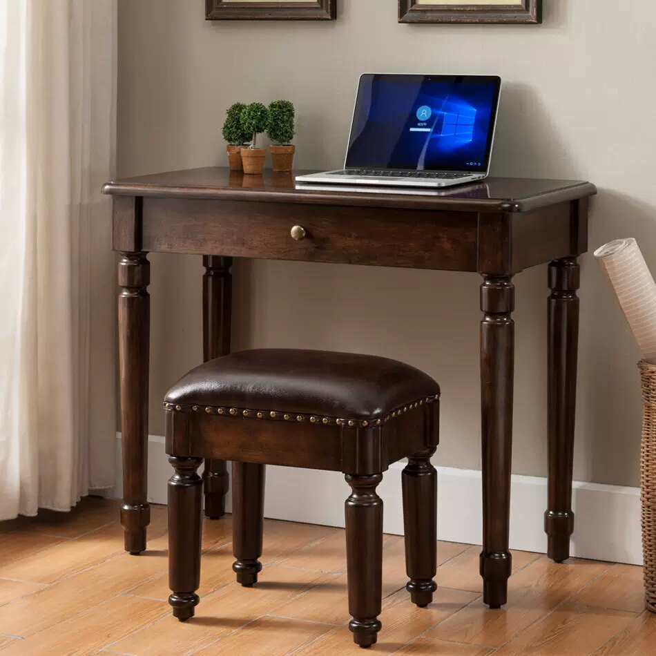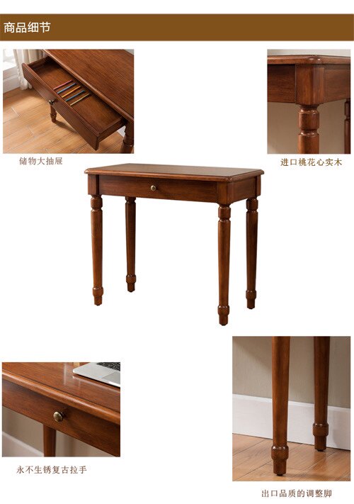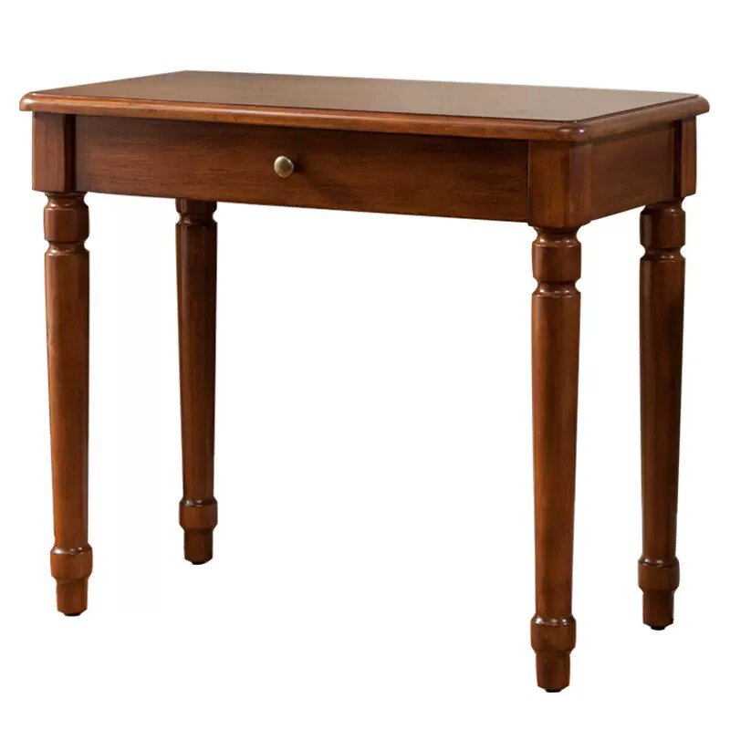 美式实木书桌小黑胡桃木床边书房电脑桌写字学习简约儿童原木书桌