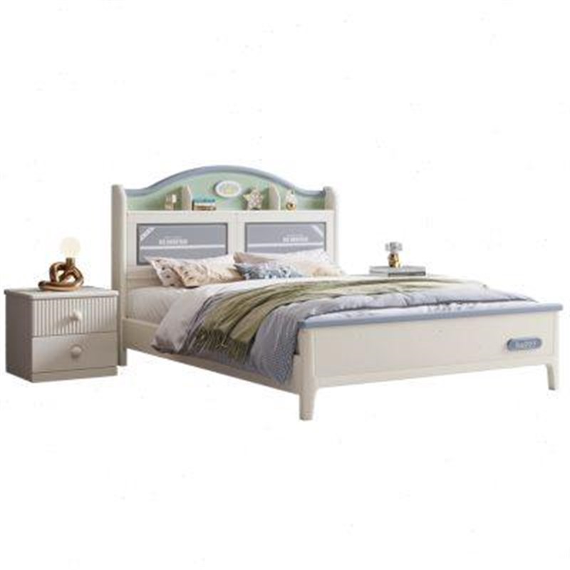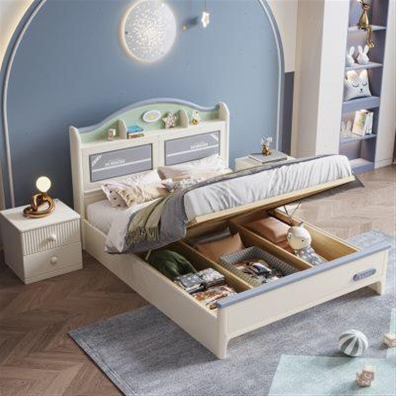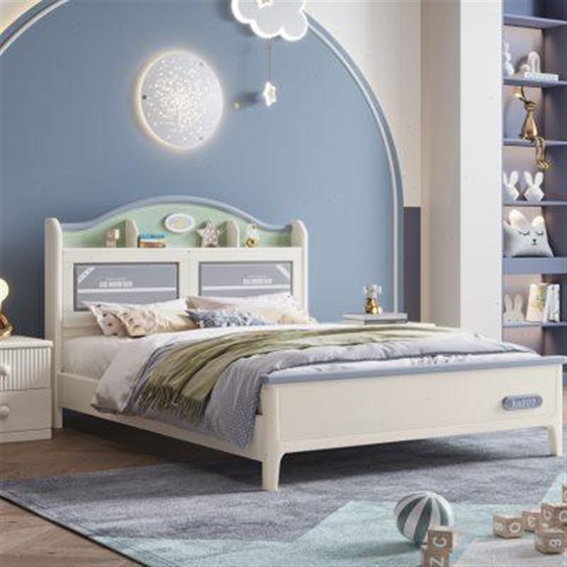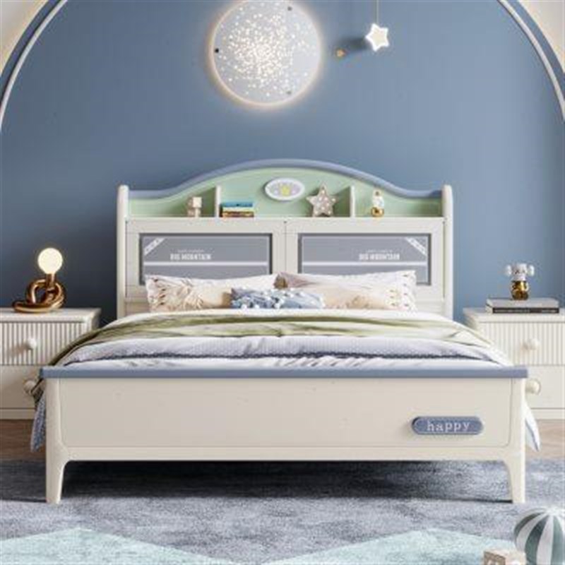 全实木儿童床1.5米双人床1.2青少年男孩蓝白色床头可储物现代简约