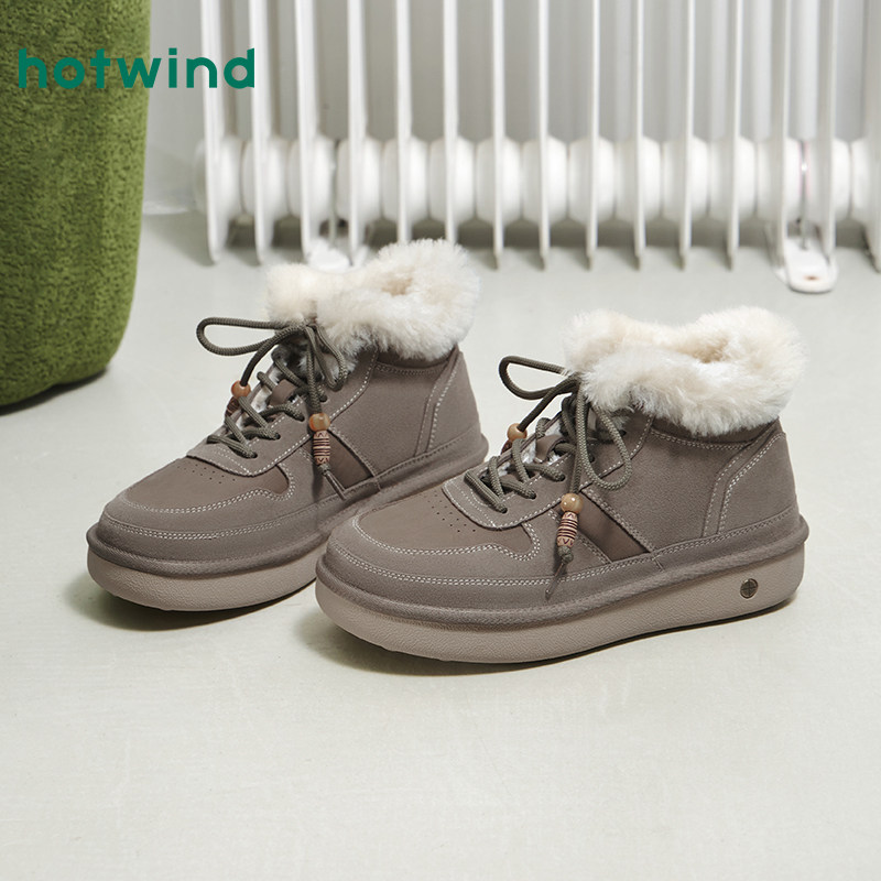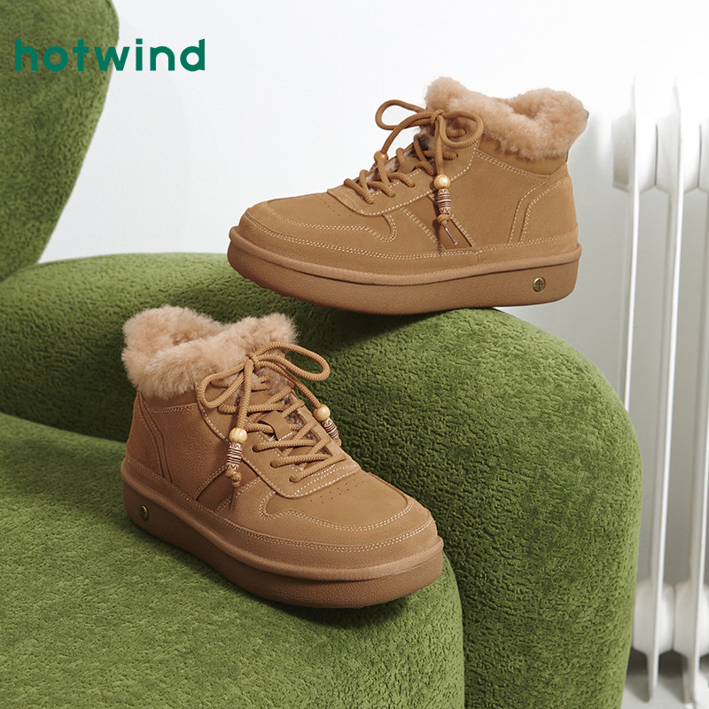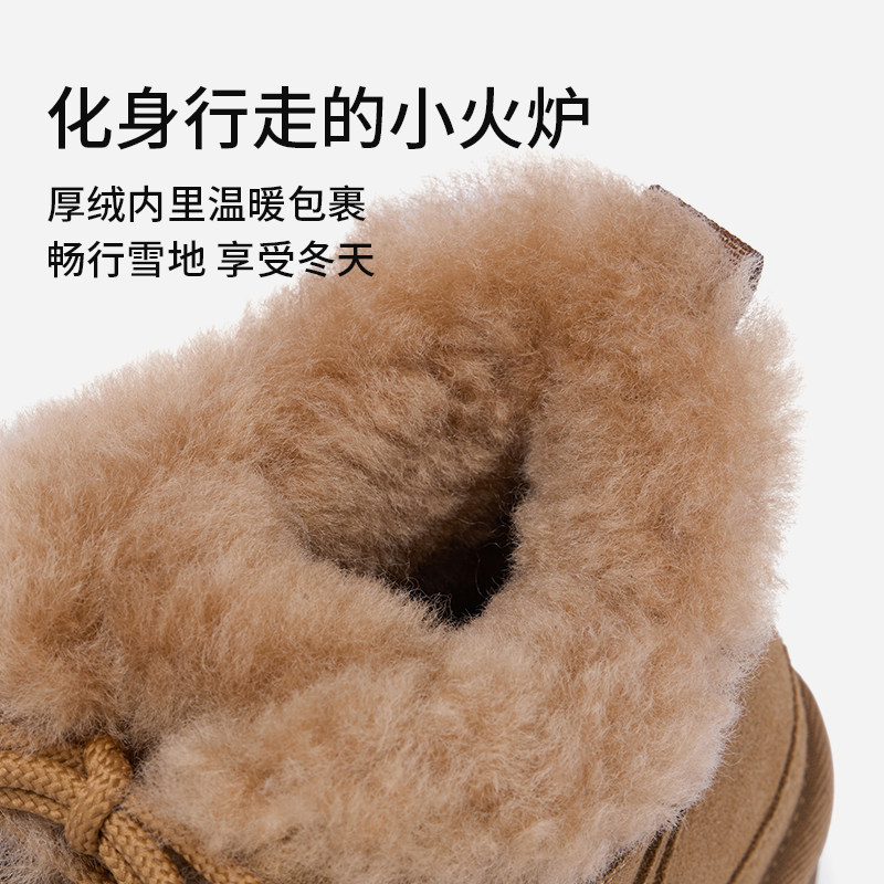 热风男鞋2025年冬季新款男士加绒保暖雪地靴厚底杏色百搭短靴子