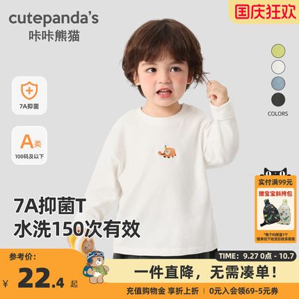 咔咔熊猫宝宝简约长袖T恤秋装儿童纯棉休闲上衣秋款男童衣服秋季
