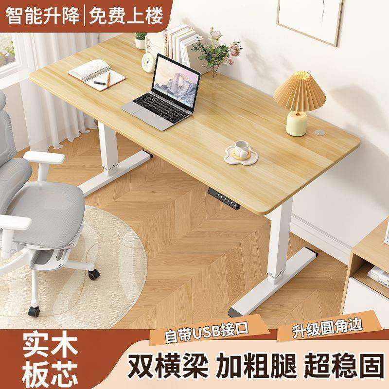 实木电动升降学桌能智降电脑桌可131升书桌学生工作台电竞办公习