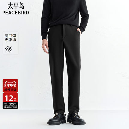 【商场同款】太平鸟男装黑色高弹力休闲裤冬新款锥形裤B1GBF4285