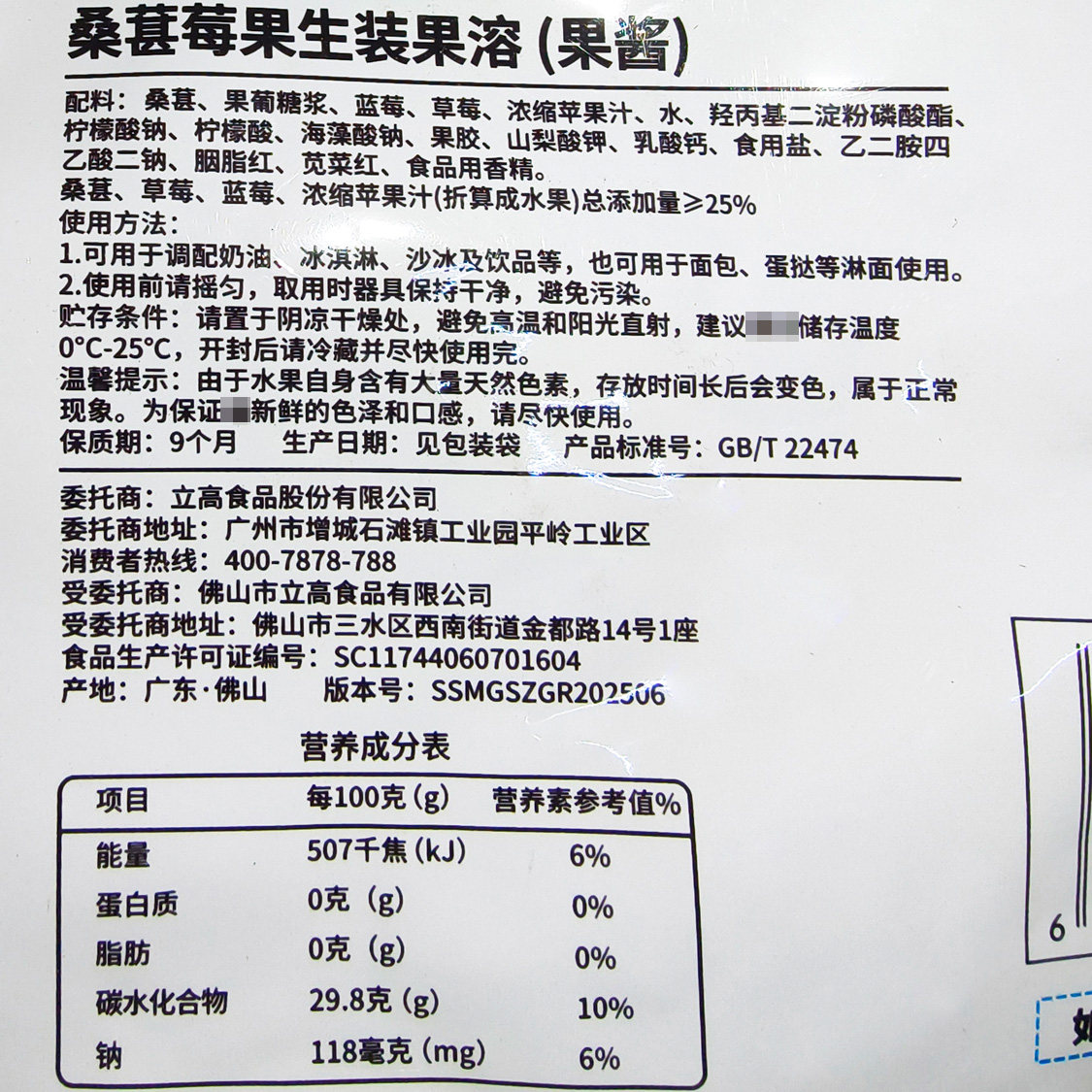 立高新仙尼生装果溶桑葚莓果