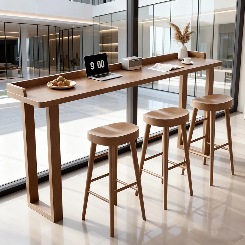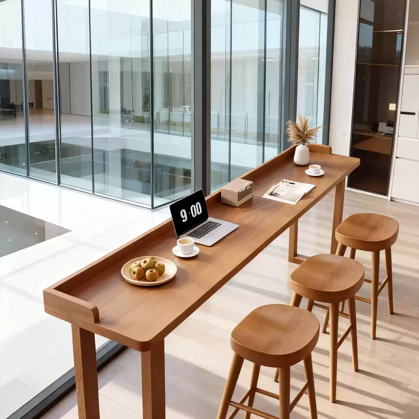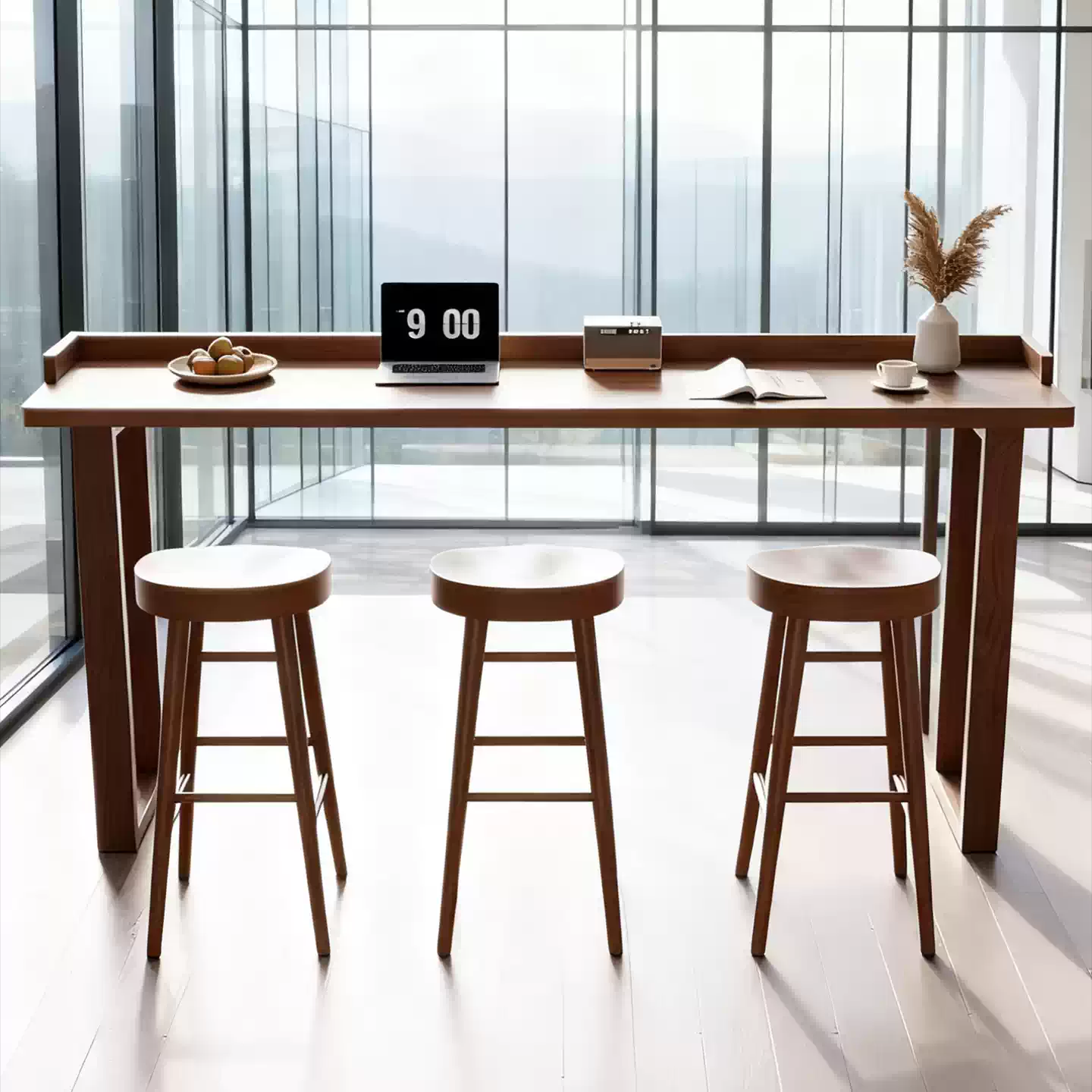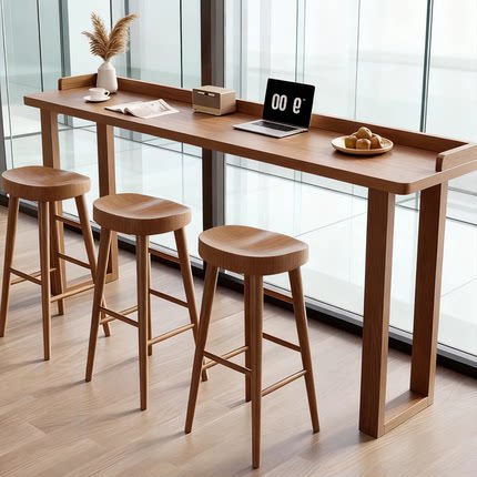 实木吧台桌家用阳台靠墙窄桌子简约长条桌酒吧奶茶店高脚桌椅组合