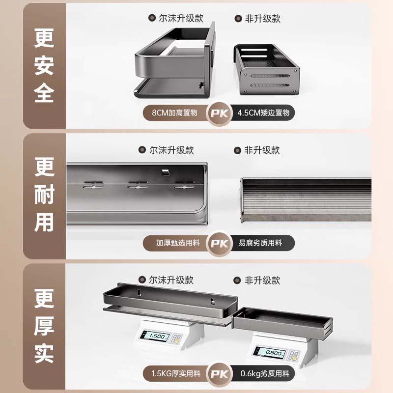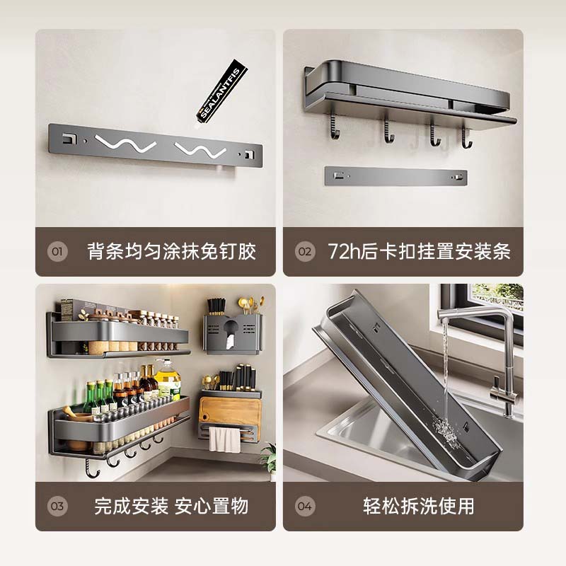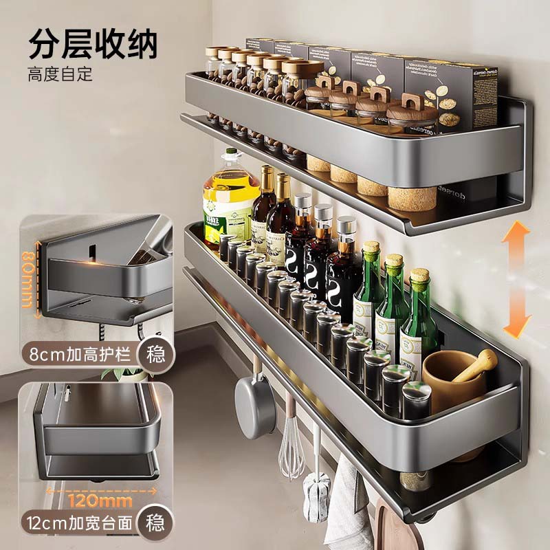 枪灰厨房置物架调料架免打孔壁挂式调味料品罐家用品墙上收纳架子
