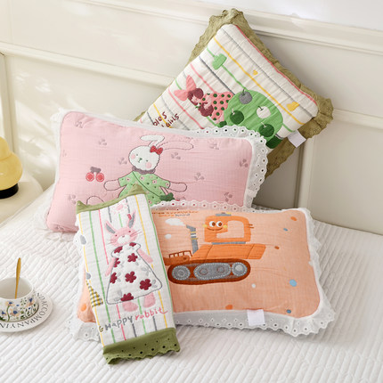 全棉纱布儿童枕套柔软透气花边全包枕头套家用棉质吸汗枕芯内胆套