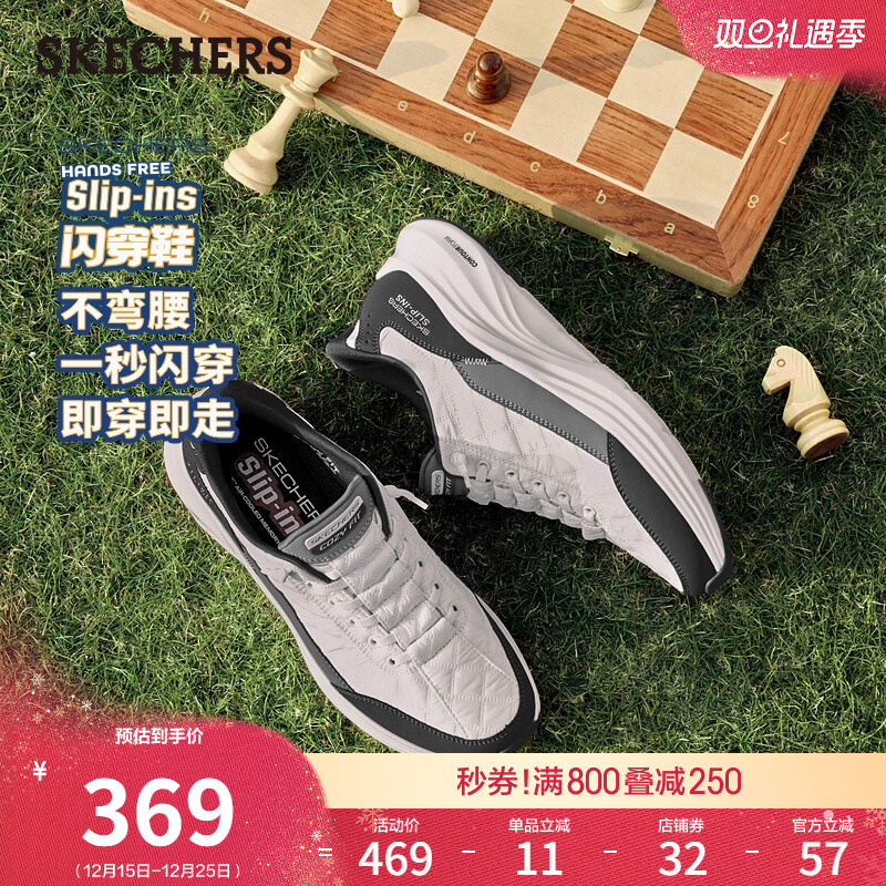 梁朝伟同款斯凯奇云感鞋秋冬新男鞋宽楦鞋一脚蹬闪穿鞋休闲运动鞋