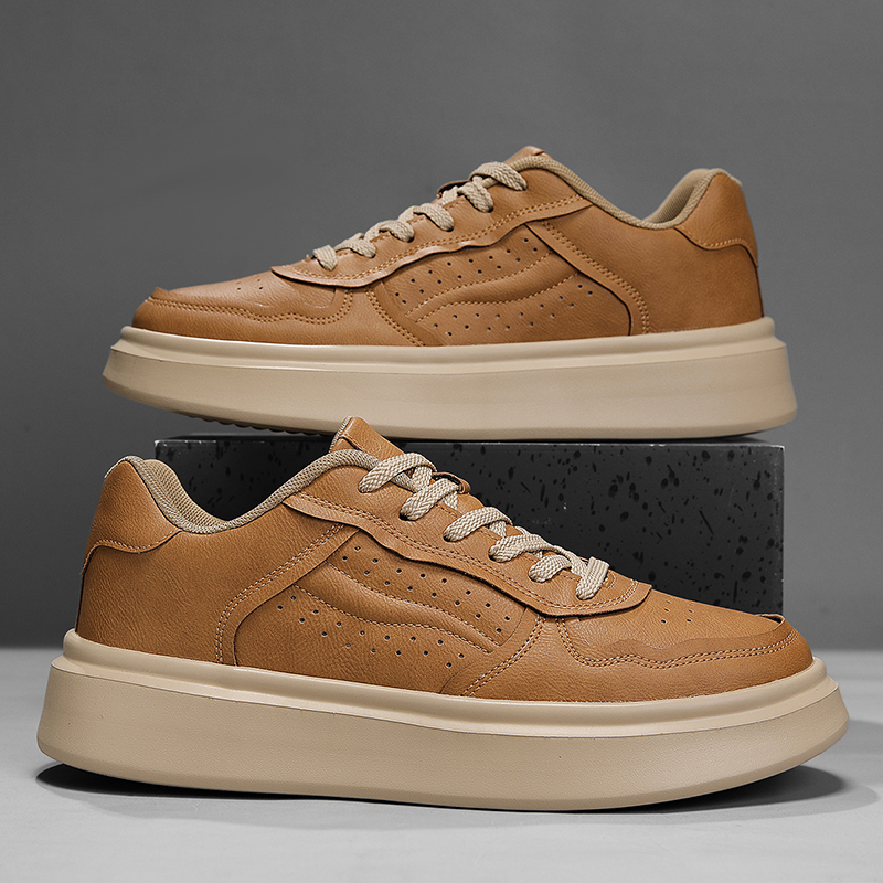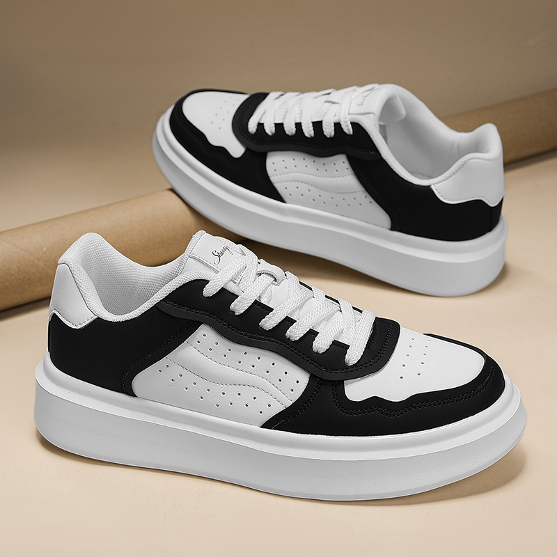 双星男鞋2025秋季新款板鞋百搭轻便透气休闲运动鞋皮面防水厚底