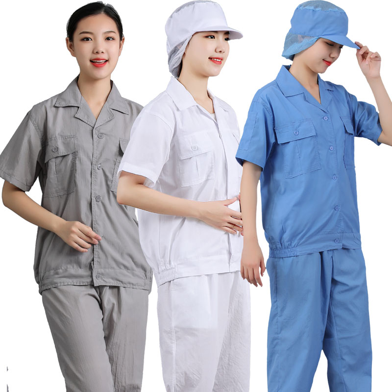 食品厂工作服女薄款短袖夏季工厂车间仓库套装男透气吸汗劳保工装