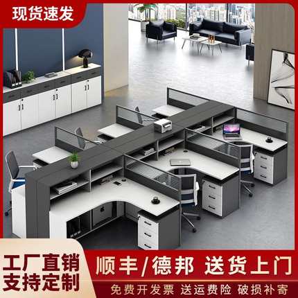 办公桌子卡座员工位办公桌椅组合简约现代4 6人办公室财务桌双人