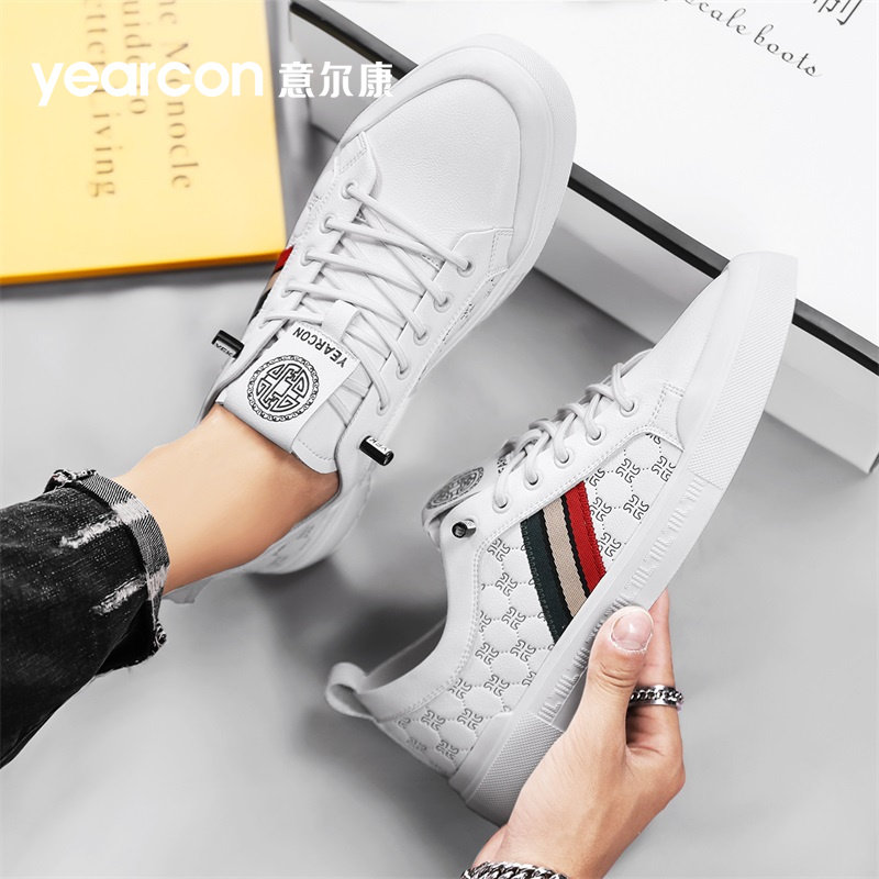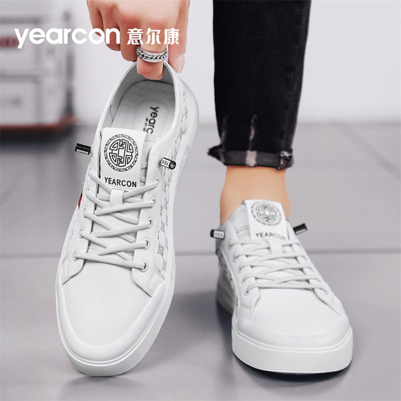 意尔康板鞋男鞋2026新款春秋夏季一脚蹬单鞋男士高端白色休闲皮鞋
