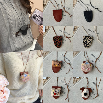 挂脖磁吸多功能皮革墨镜夹项链女款眼镜收纳挂绳脖子装饰挂链配饰