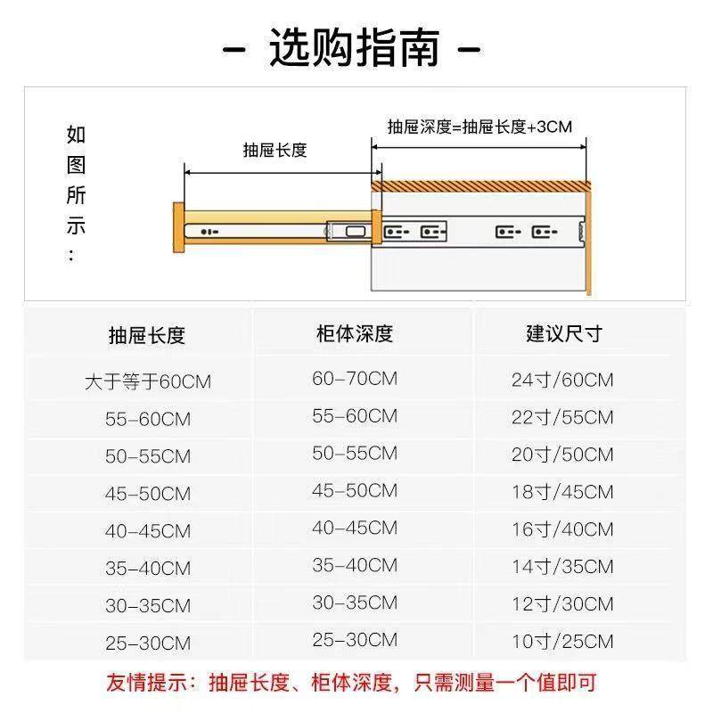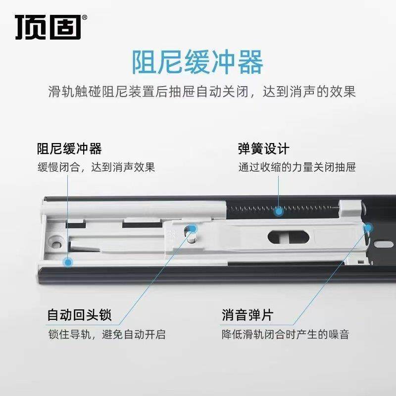 顶固静音三节轨抽屉滑轨整体橱柜轨道加厚滑道导轨侧装静音反弹阻