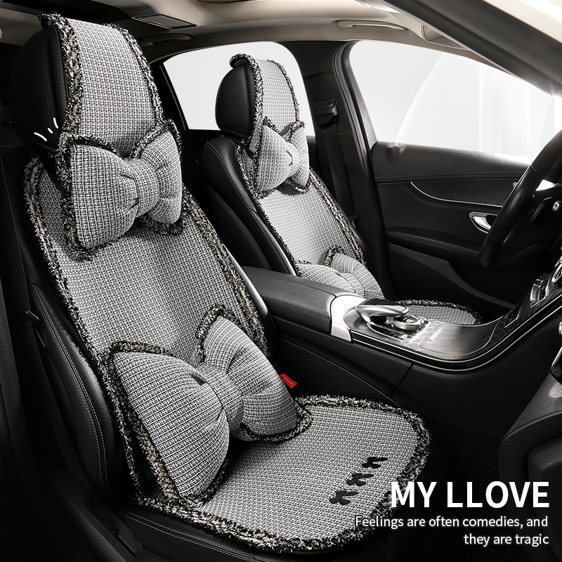 小香风汽车坐垫四季通用半包座套女士车内座垫网红女神可爱座椅套