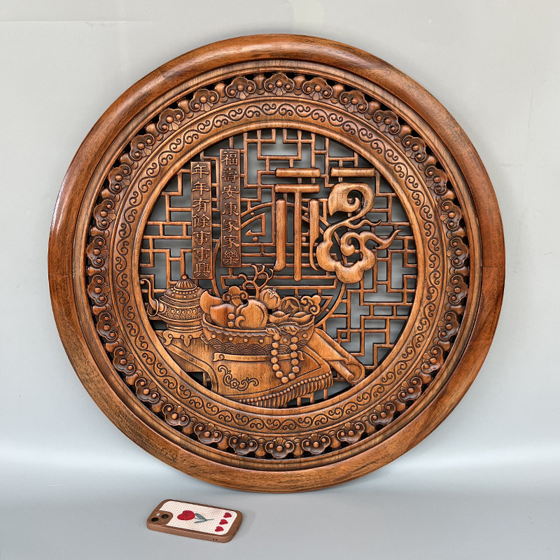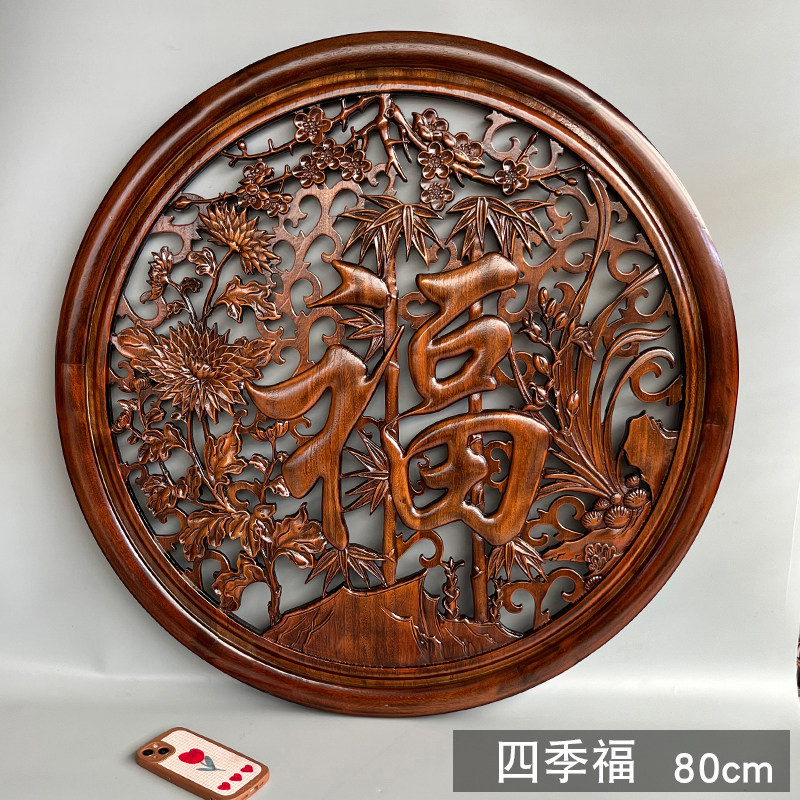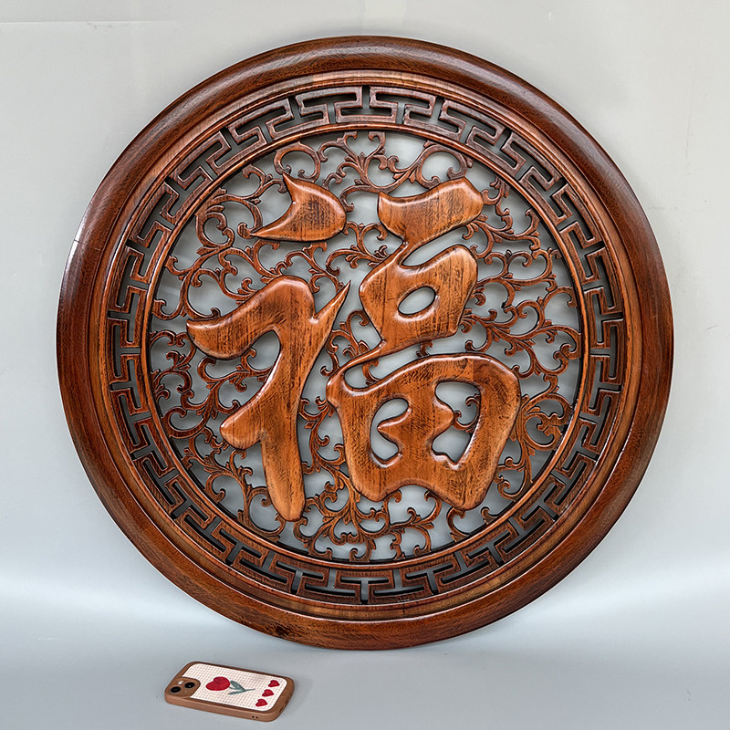 东阳木雕香樟木圆福字挂件客厅玄关沙发背景墙中式装饰画实木壁挂