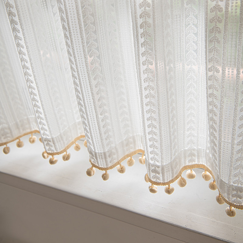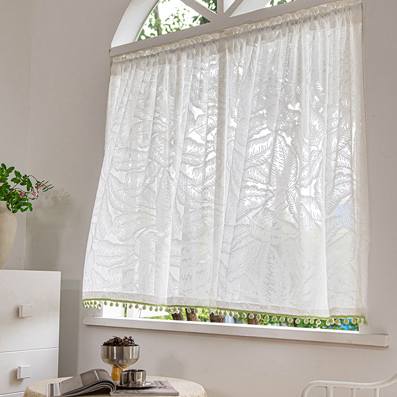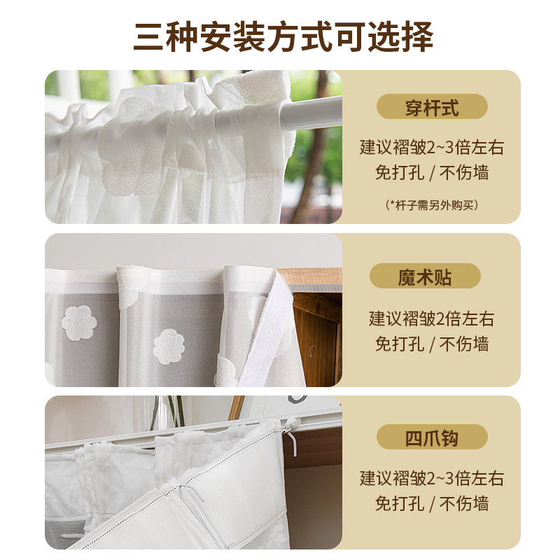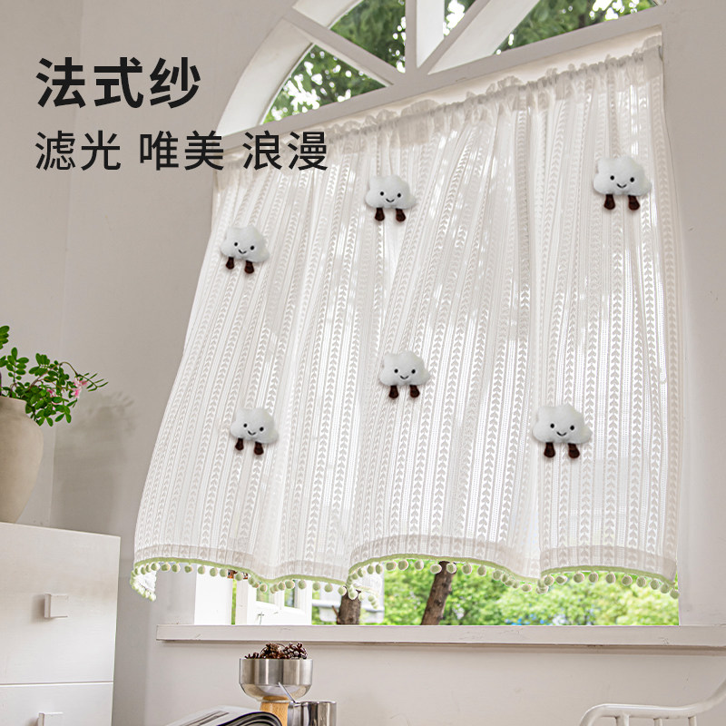窗帘透光不透人纱帘蕾丝免打孔安装飘窗白纱遮挡帘魔术贴2025厨房