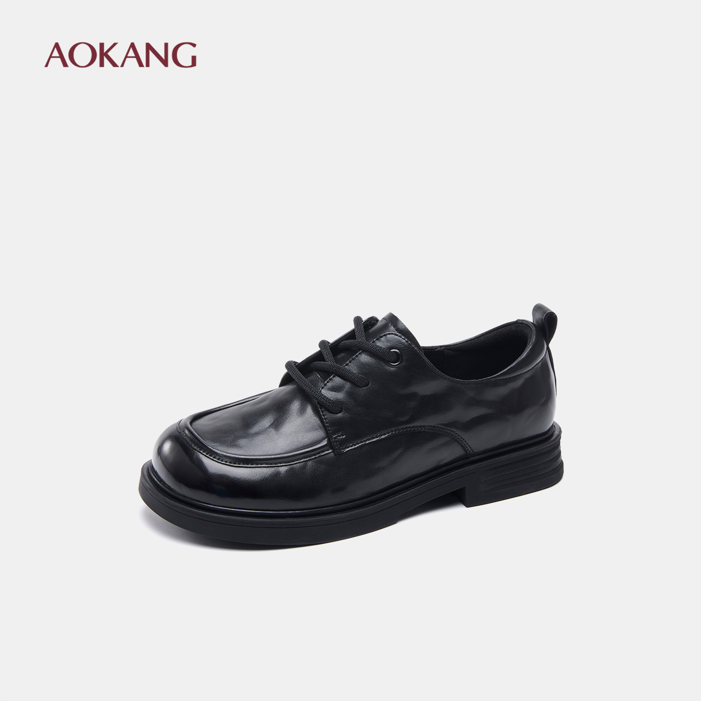 奥康 女鞋2025秋季新款真皮乐福鞋复古英伦风系带小皮鞋门店发货