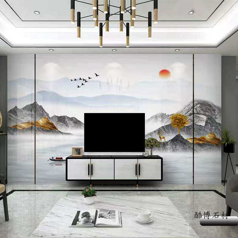 客厅全釉装饰佛山背景石材瓷砖抛造型岩板瓷片内电视墙大理石墙砖