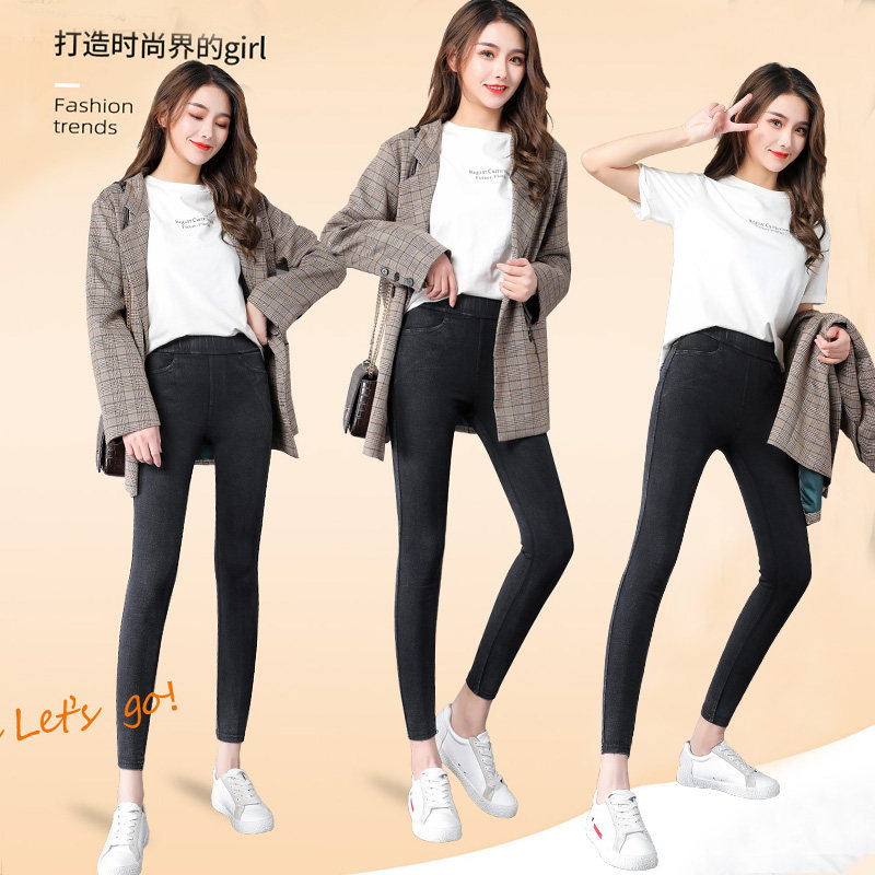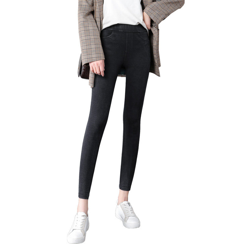 高腰牛仔打底裤女外穿春秋薄款小脚紧身黑色显瘦百搭九分魔术显高