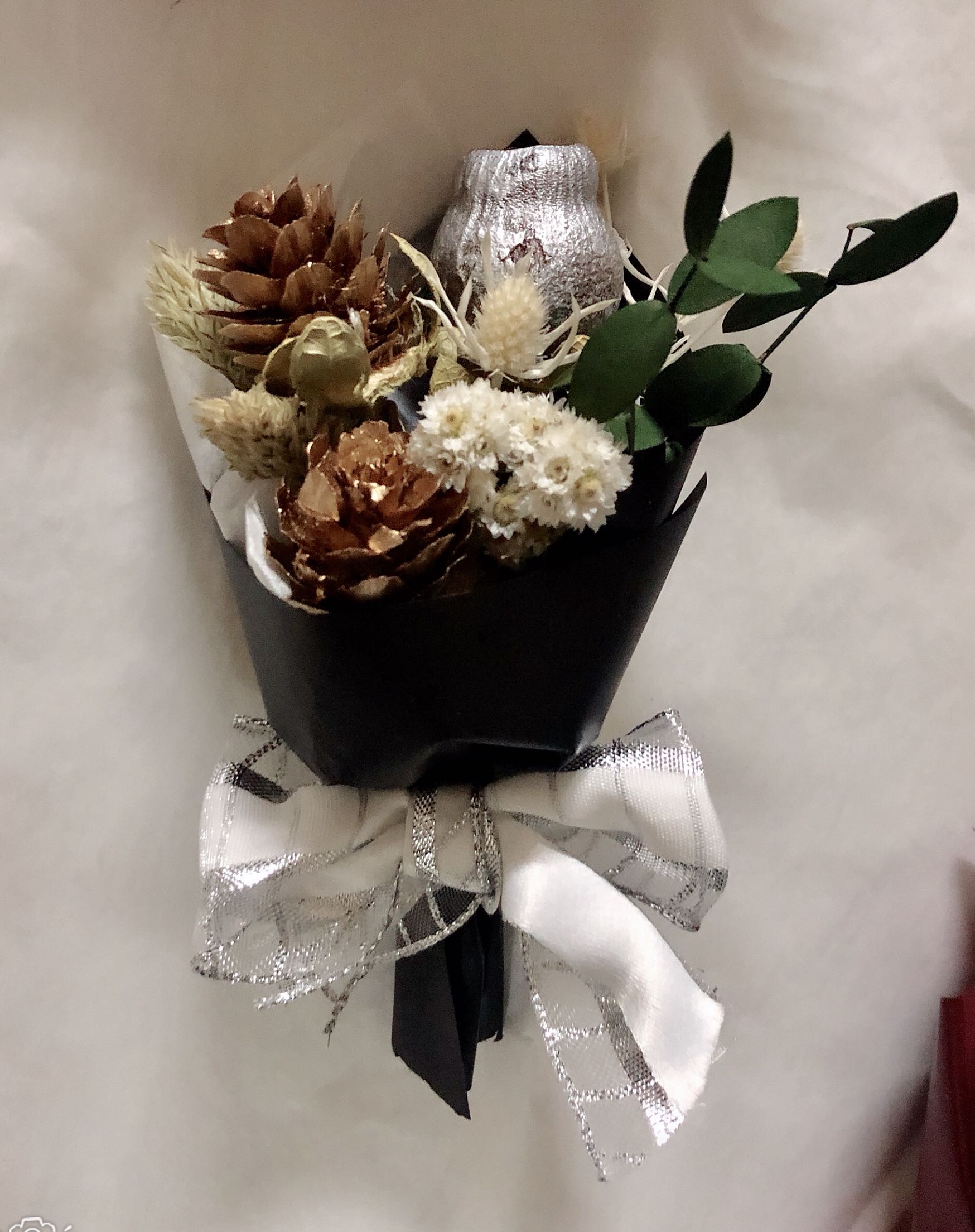 婚礼婚庆花车小花束迷你干花金松果富贵叶永生花节日活动伴手礼盒